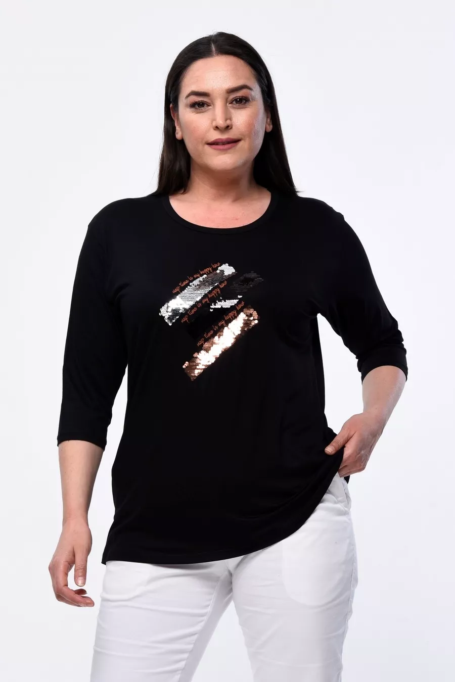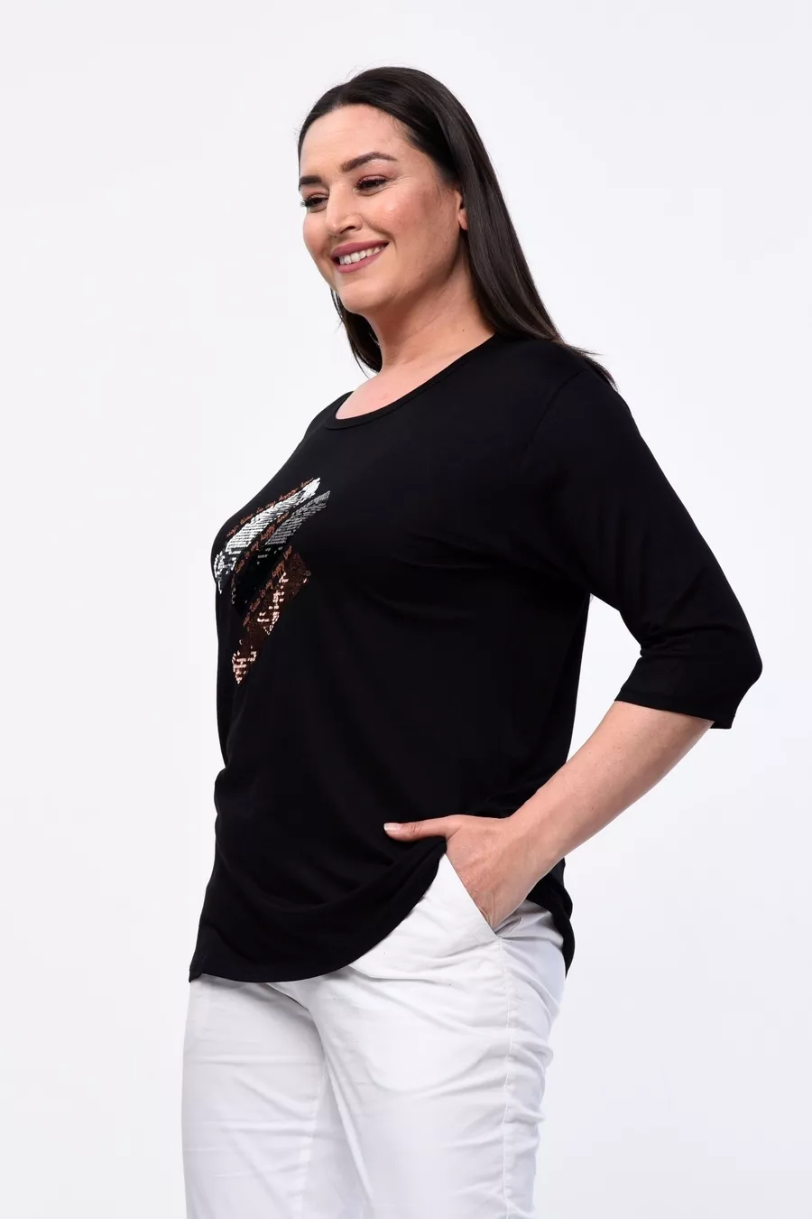 Plus Size New Season Comfortable Model Half-Sleeve Sequin Embroidered Blouse for Moms, Suitable for All Seasons