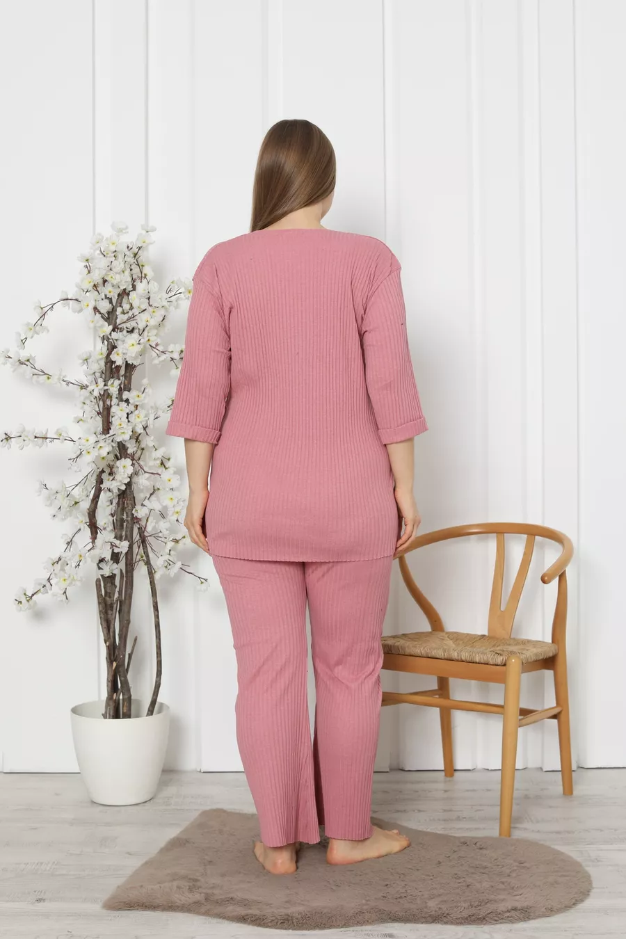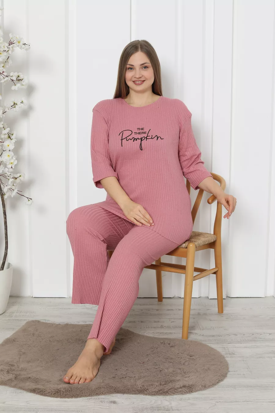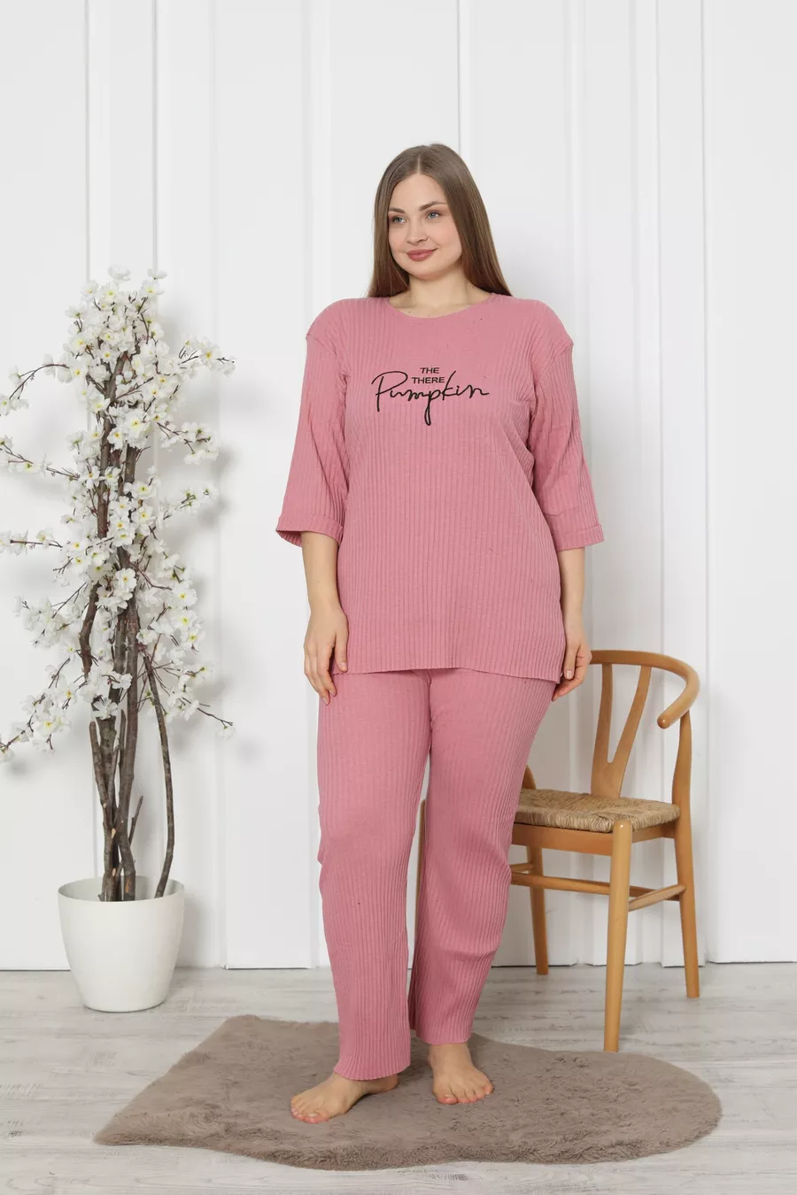 Additional Feature: No Additional Feature Available Color: Pink Sleeve Type: Three-Quarter Sleeve Pattern: Lettered / Motto Neck Type: Crew Neck Leg Length: Long Material: Cotton Fit: Plus Size Fabric Type: Knitted Environment: Homewear Sustainability Detail: Yes Silhouette: Oversize Sleeve Length: Three-Quarter Sleeve Waist: Regular Waist Top-Bottom Set: T-shirt-Pants Persona: Cool & Comfort Number of Pieces: 2 Pieces Washing Instructions: T09 Hem Type: Straight Hem Collection: Homewear Package Contents: 2 Pieces Length: Long Season: All Seasons Origin: TR