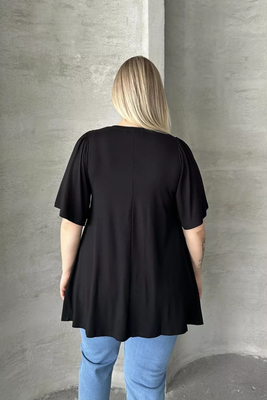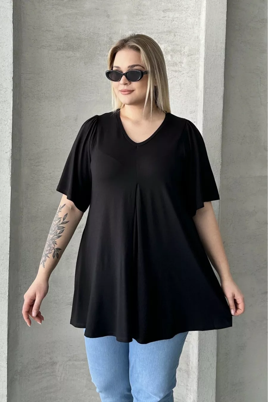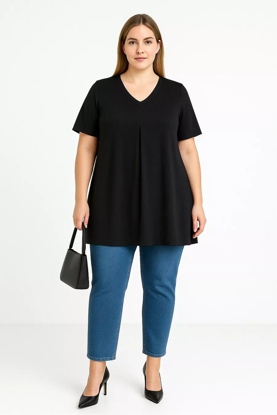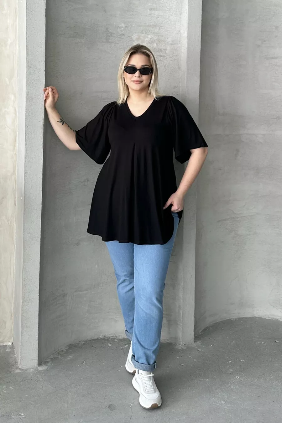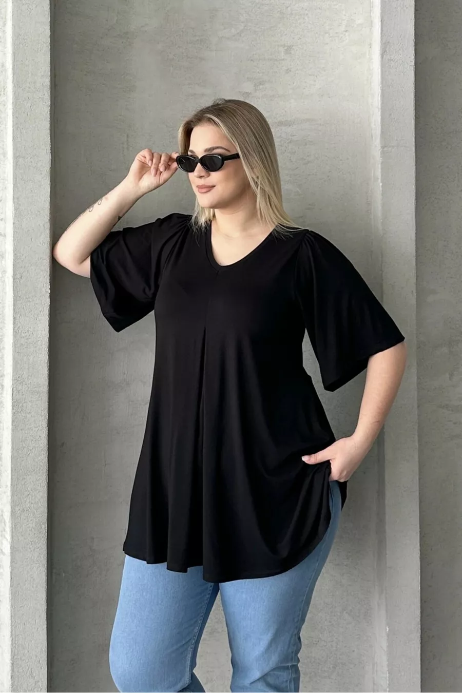 Plus Size V-Neck Solid Asymmetric Cut Stretch Blouse