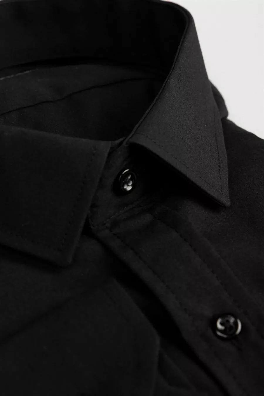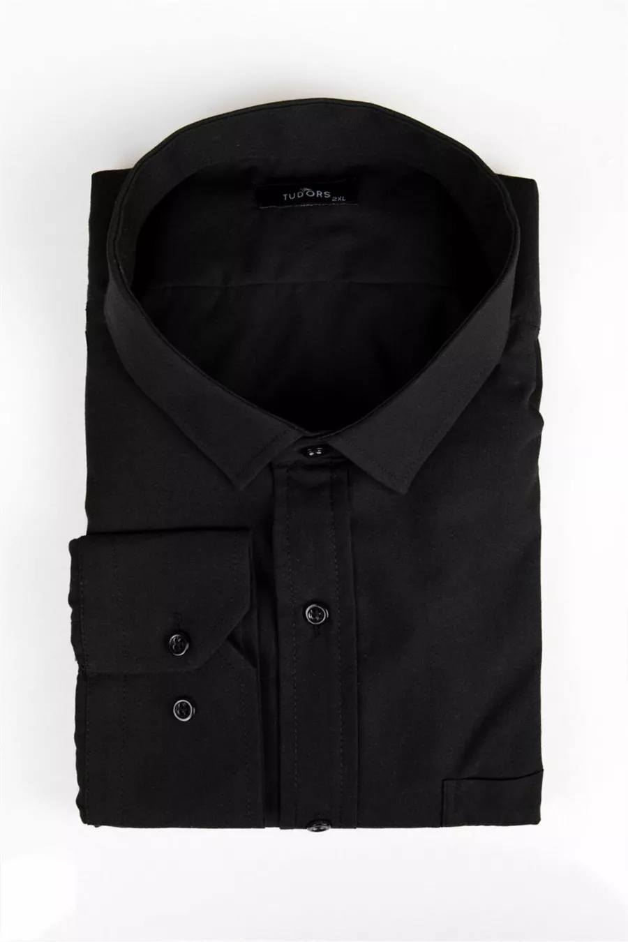 Plus Size Long Sleeve Easy Iron Plain Men's Black Shirt