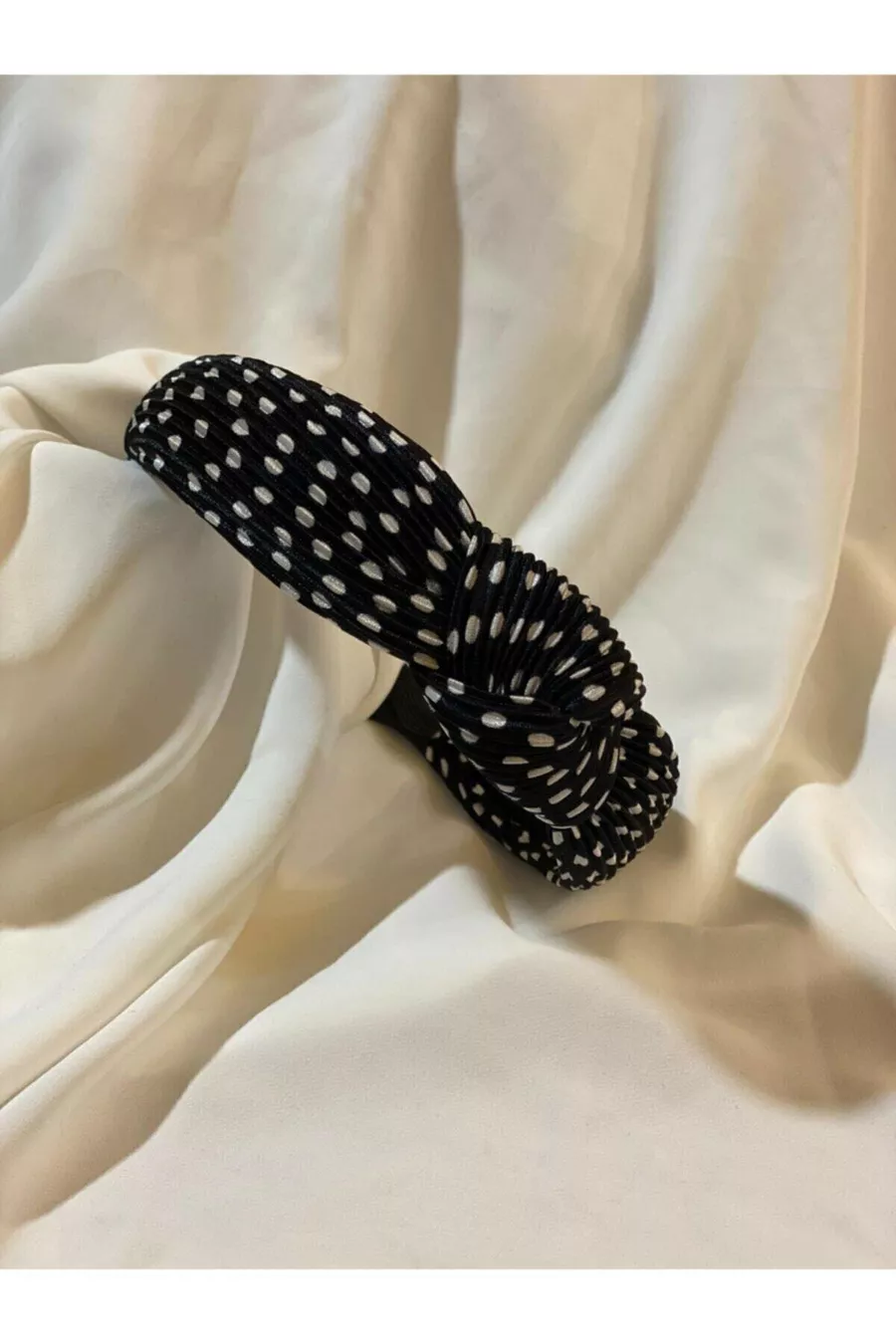 Polka Dot Black Satin Headband
