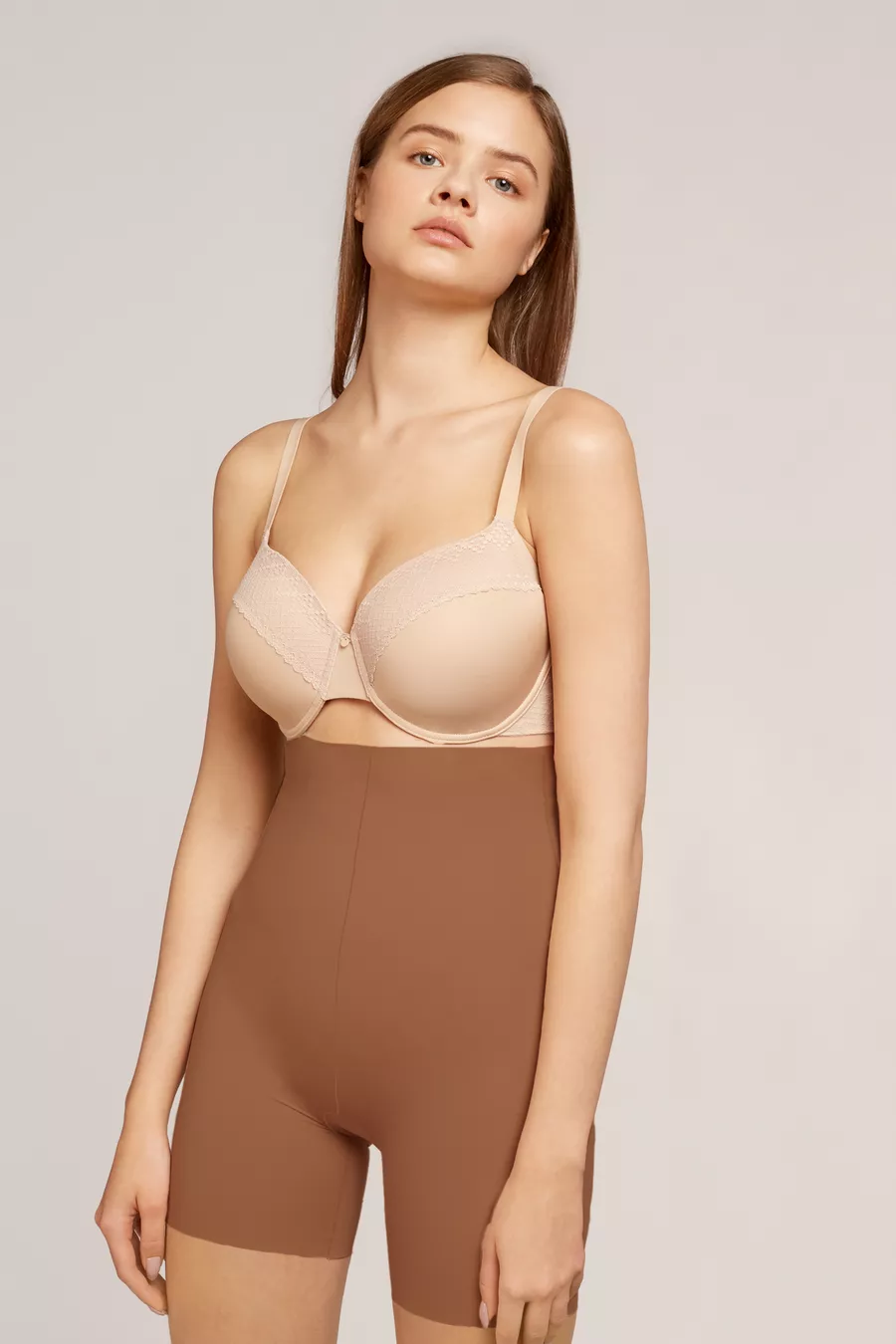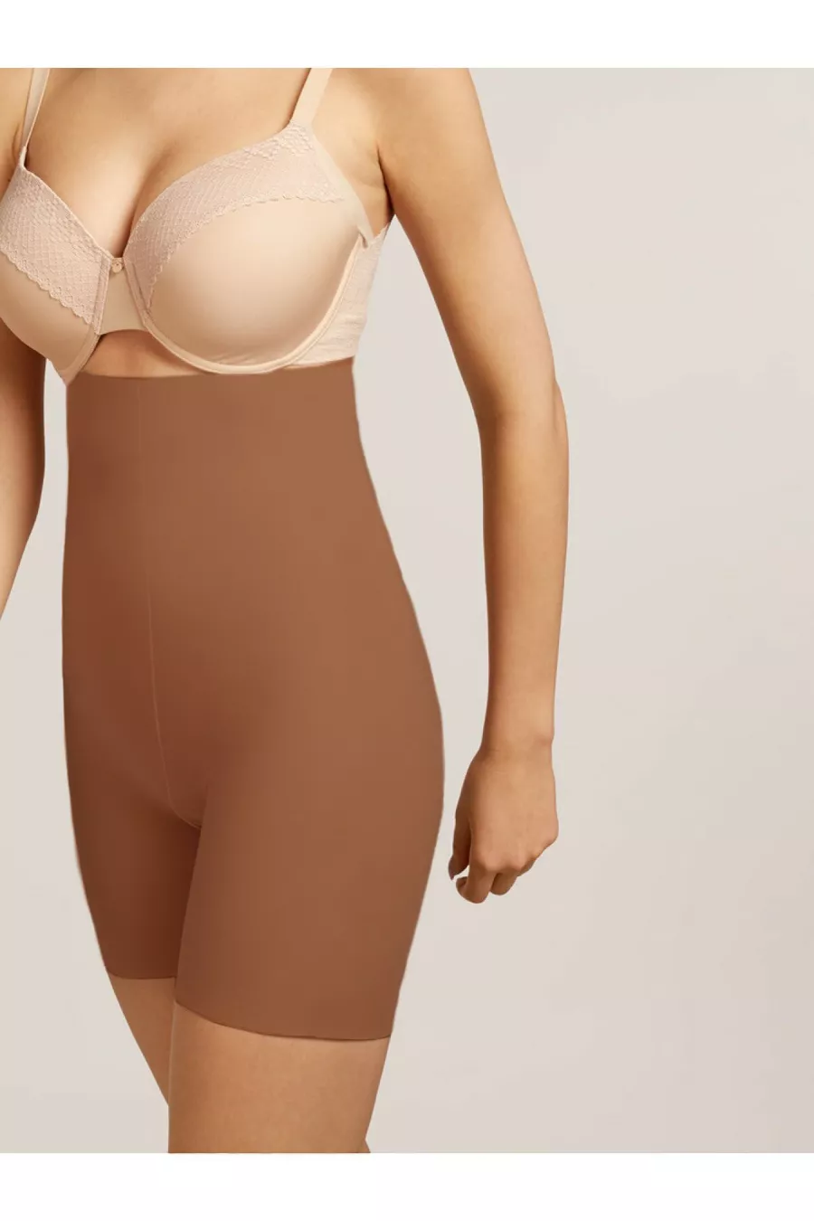 Porfy Slimming Effect Laser Cut Shorts Shapewear with Hem, No Marks, Brown Color
