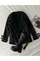 Fit: Regular Fabric Type: Woven Color: Black Collar Type: Jacket Collar Pattern: Plain Product Detail: Lined Product Type: Plain Pocket: Double Pocket Thickness: Thick Lining: Lined Length: Regular Silhouette: Biker Occasion: Casual/Everyday Collection: Basic Sleeve Length: Long Sleeve Type: Standard Sleeve Additional Feature: Waterproof Filling Technique: Unfilled Persona: Cool & Comfort Closure Type: Zipper Print/Embroidery Technique: No Print Filling Material: Polyester Belt/Waistband: With Belt Material: Plush Material Composition: 5% Elastane, 95% Polyester Weave Type: Plush Washing Instructions: Type 2 Season: Winter Box Condition: No Box Package Contents: Single