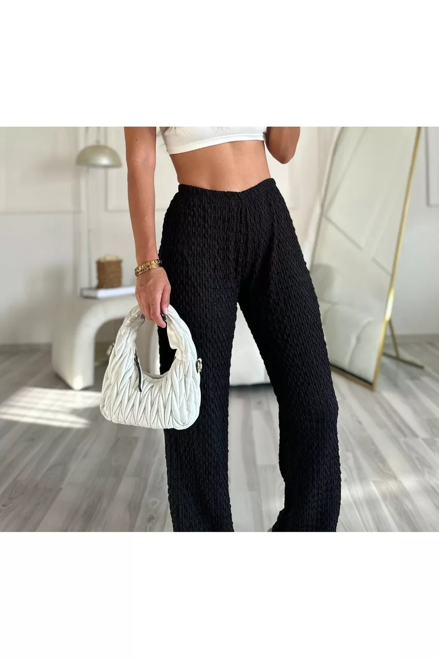 PREMIUM SPIDER WAFFLE FABRIC ULTRA HIGH-WAIST BLACK PANTS