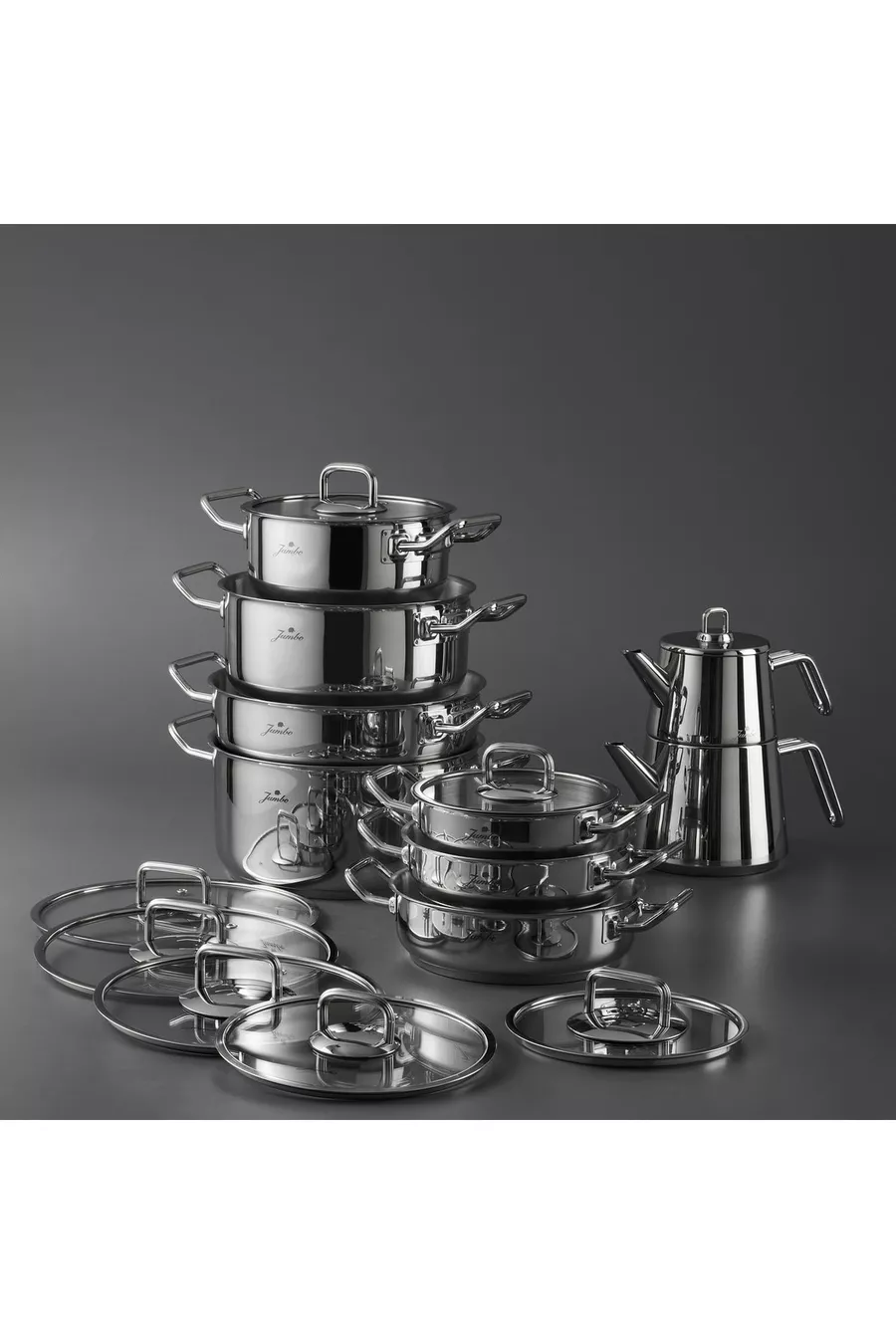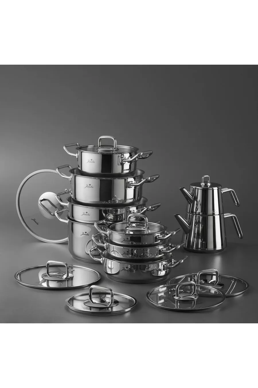 Color: Silver Size/Dimension: 24 cm Capacity: 2.01 L Feature: Suitable for induction stove Exterior Material: Steel Interior Material: Steel Number of Pieces: 17 Origin: TR Material: Glass