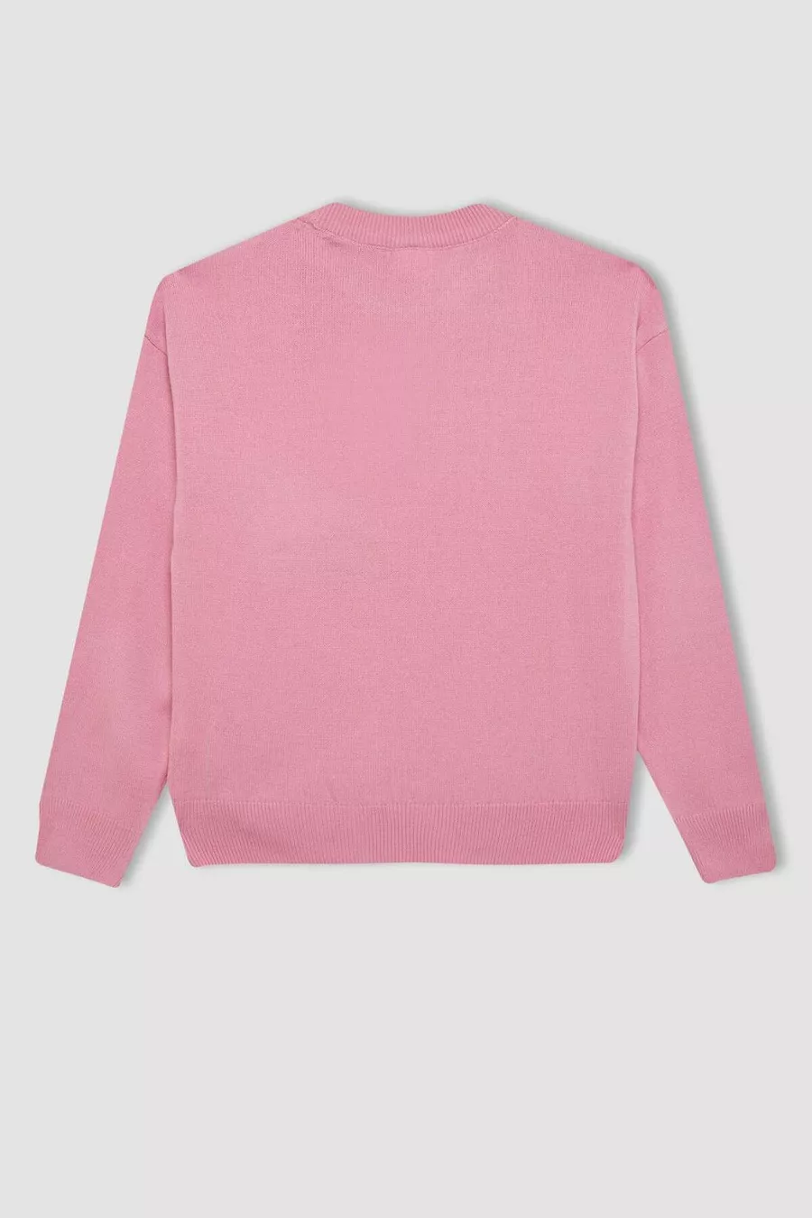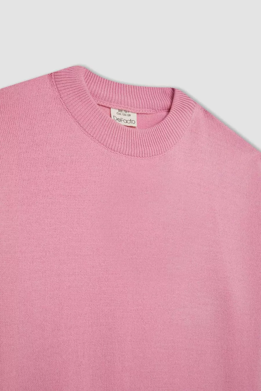 Girls' Light Pink Standard Fit Crew Neck Basic Plain Knit Sweater AU