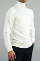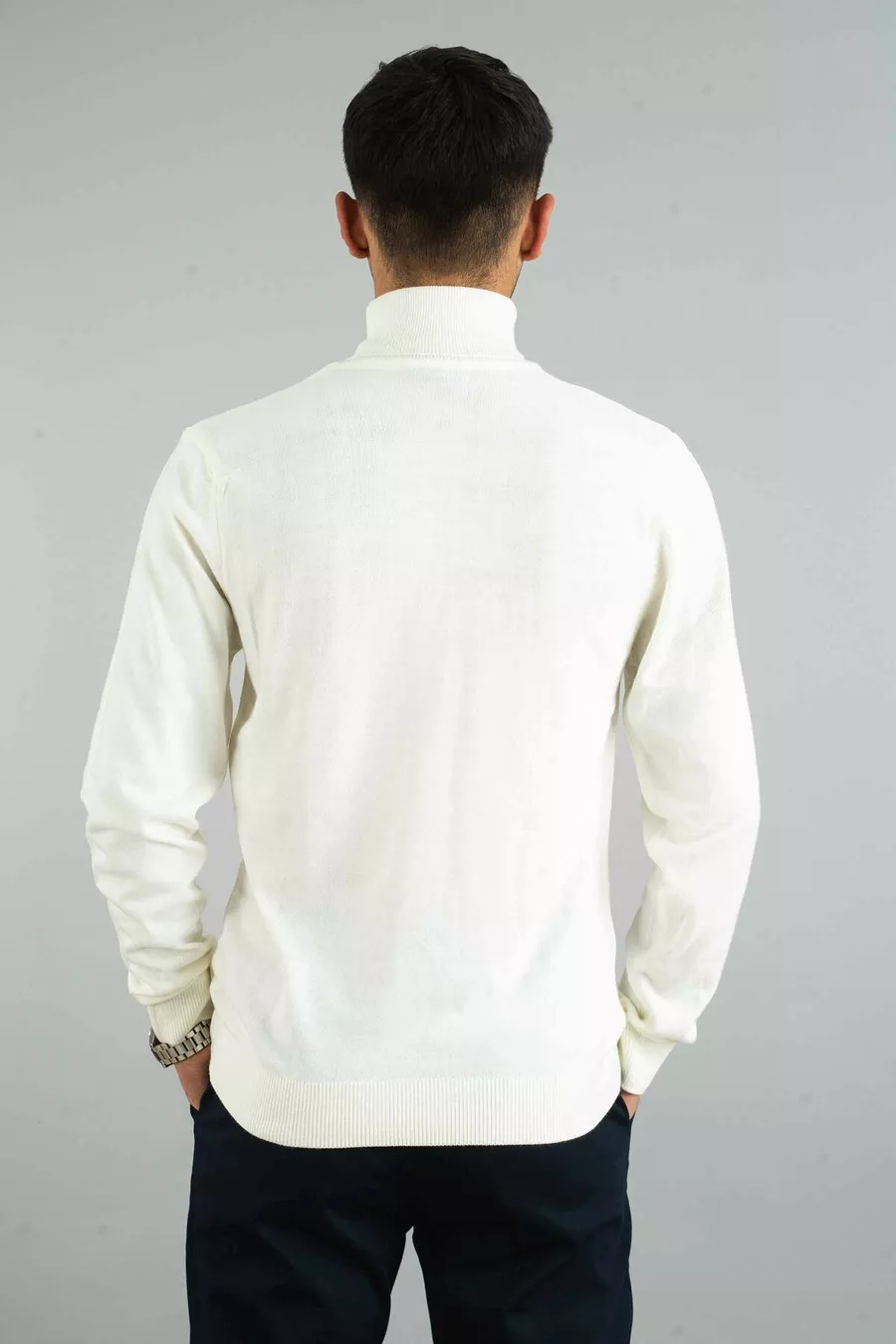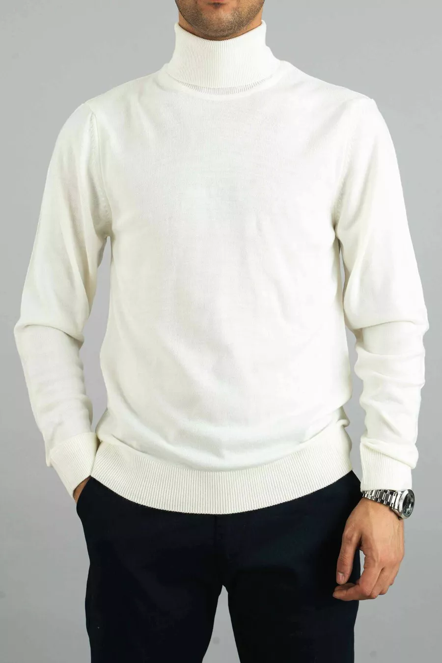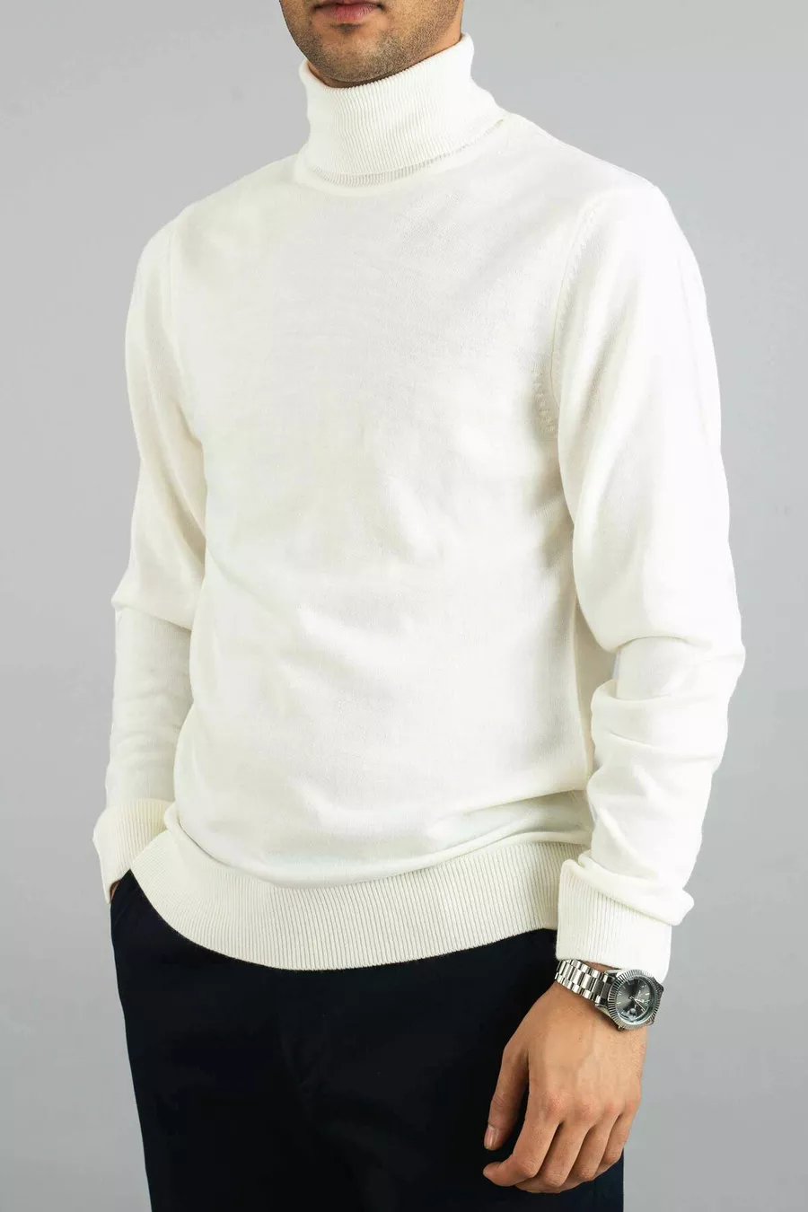 Men's White Slim Fit Turtleneck Cotton Knit Sweater