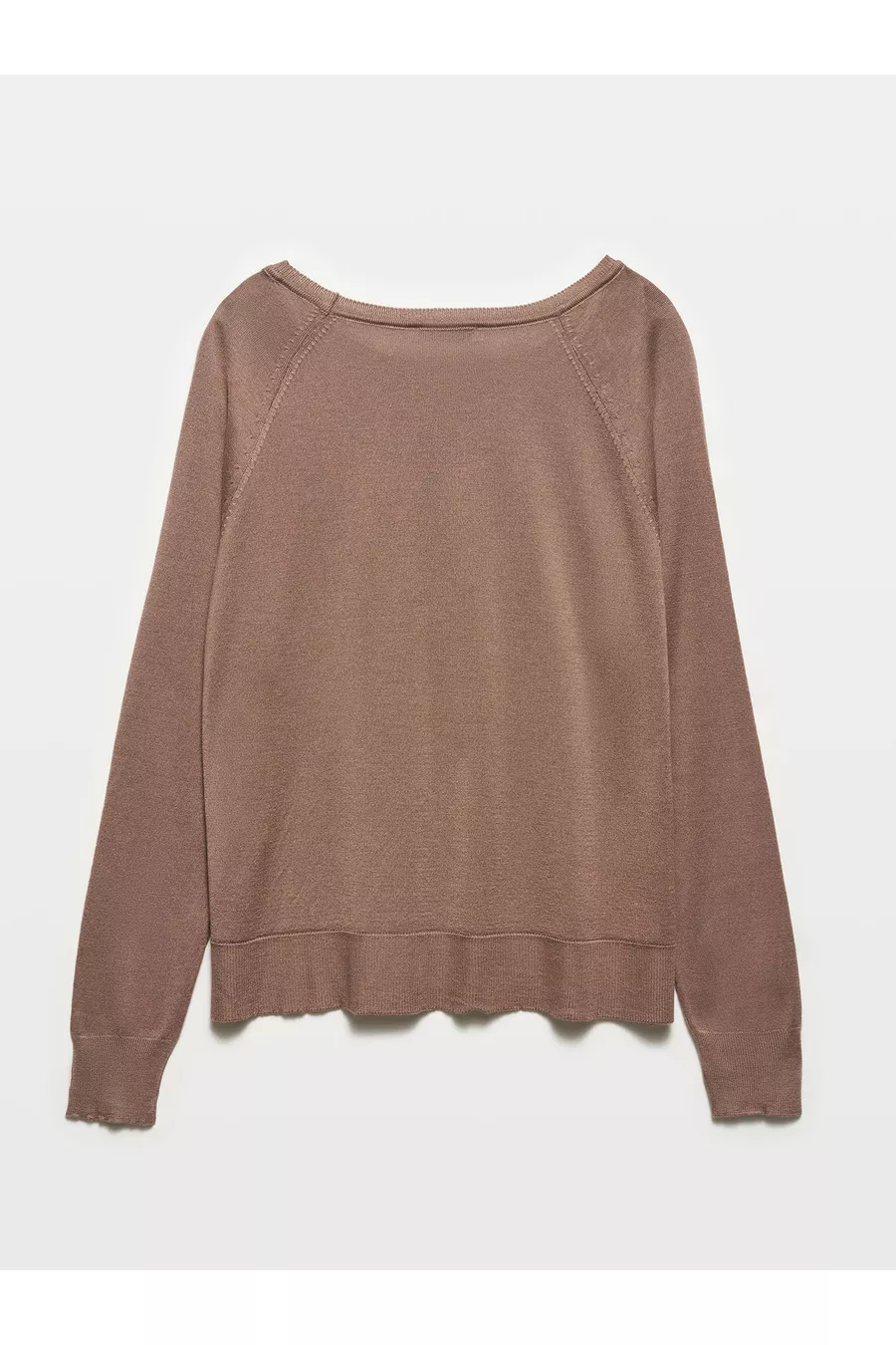 Pattern: Plain Fit: Regular Neck Type: Crew Neck Fabric Type: Knit Material: Viscose Blend Color: Brown Sleeve Type: Long Sleeve Pocket: No pockets Product Detail: Knitted Details Product Type: Plain Sleeve Length: Long Thickness: Thin Collection: Basic Silhouette: Basic Occasion: Casual Length: Standard Additional Feature: With side slit Print/Embroidery Technique: No print Persona: Young Weave Type: Knit Sustainability Detail: No Number of Pieces: 1 Belt/Sash Status: Without belt Material Composition: 50% Viscose, 50% Acrylic Washing Instructions: Wash at 30°C Season: All Seasons Country of Origin: TR Box Status: No box
