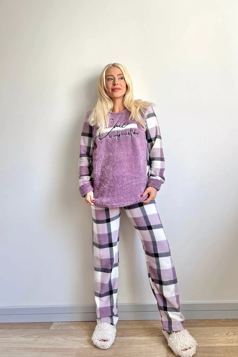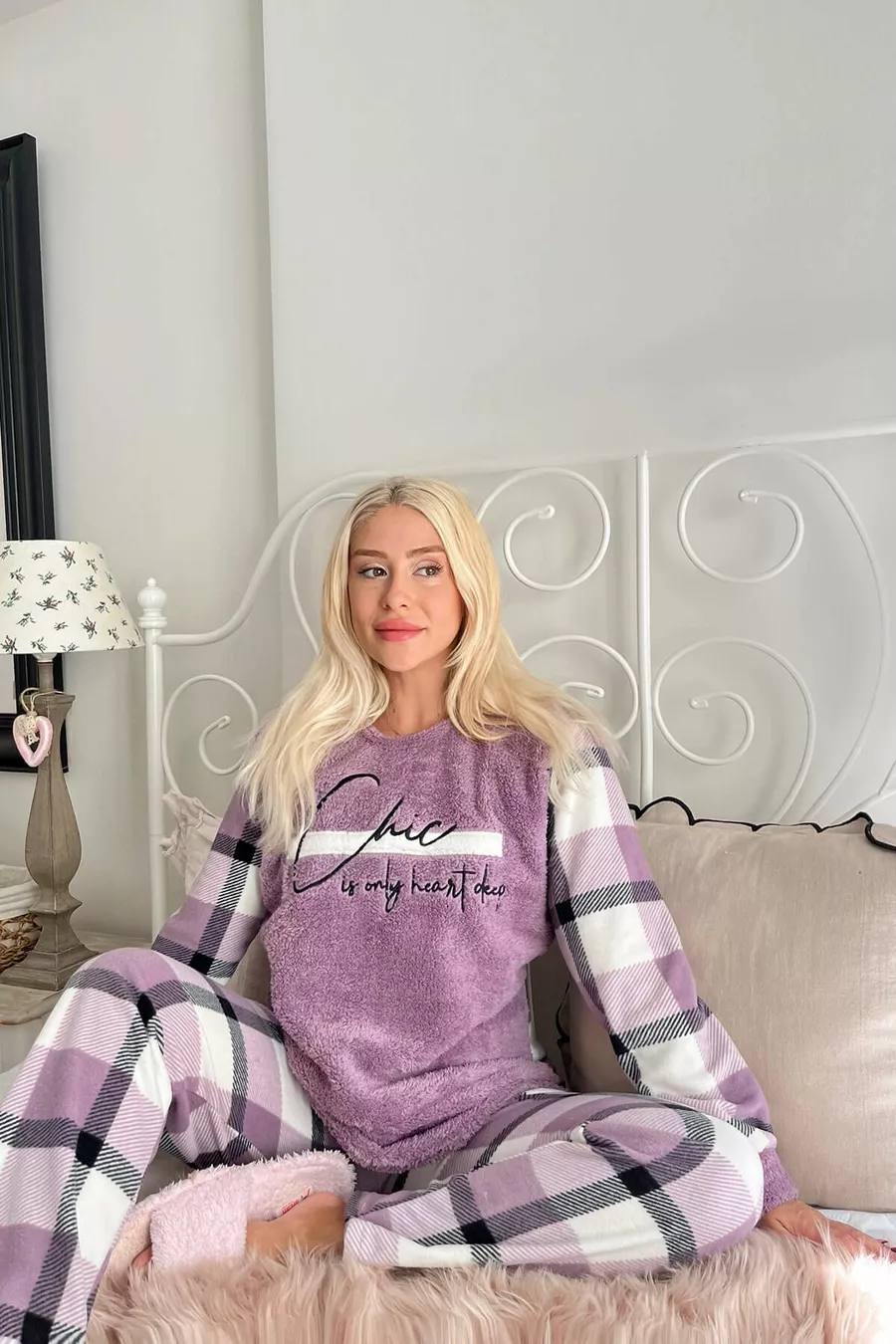 Purple Deep Chic Patterned Women's Plush Pajama Set