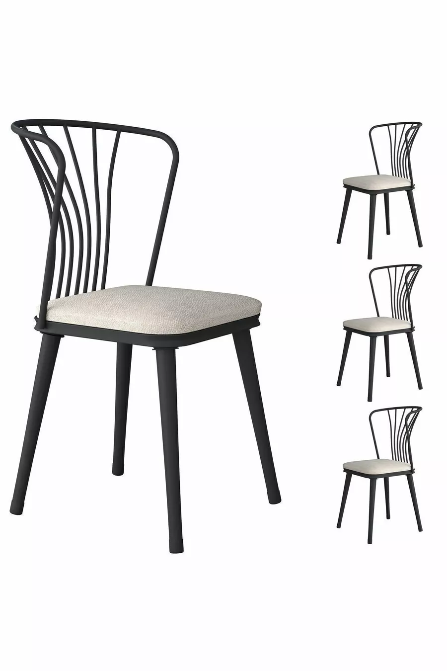 Rani Metal Chair Set of 4 Kitchen Dining Chairs Cream