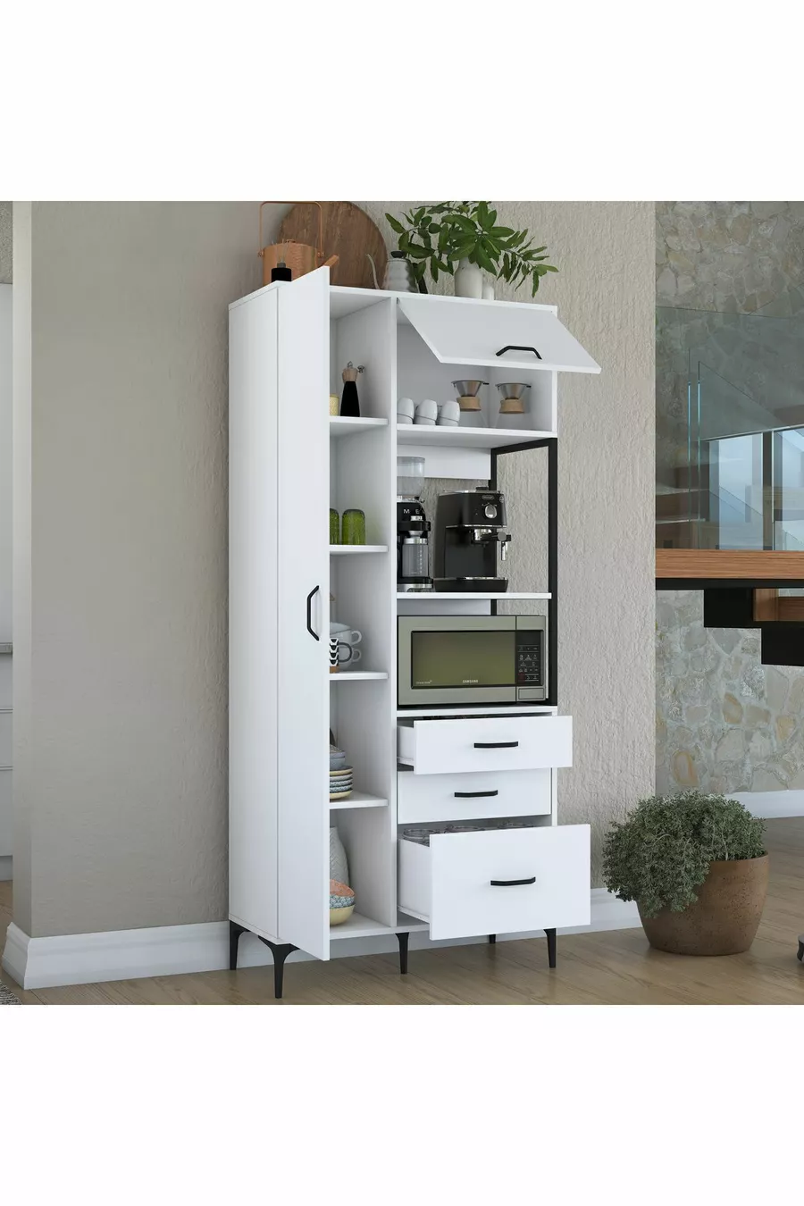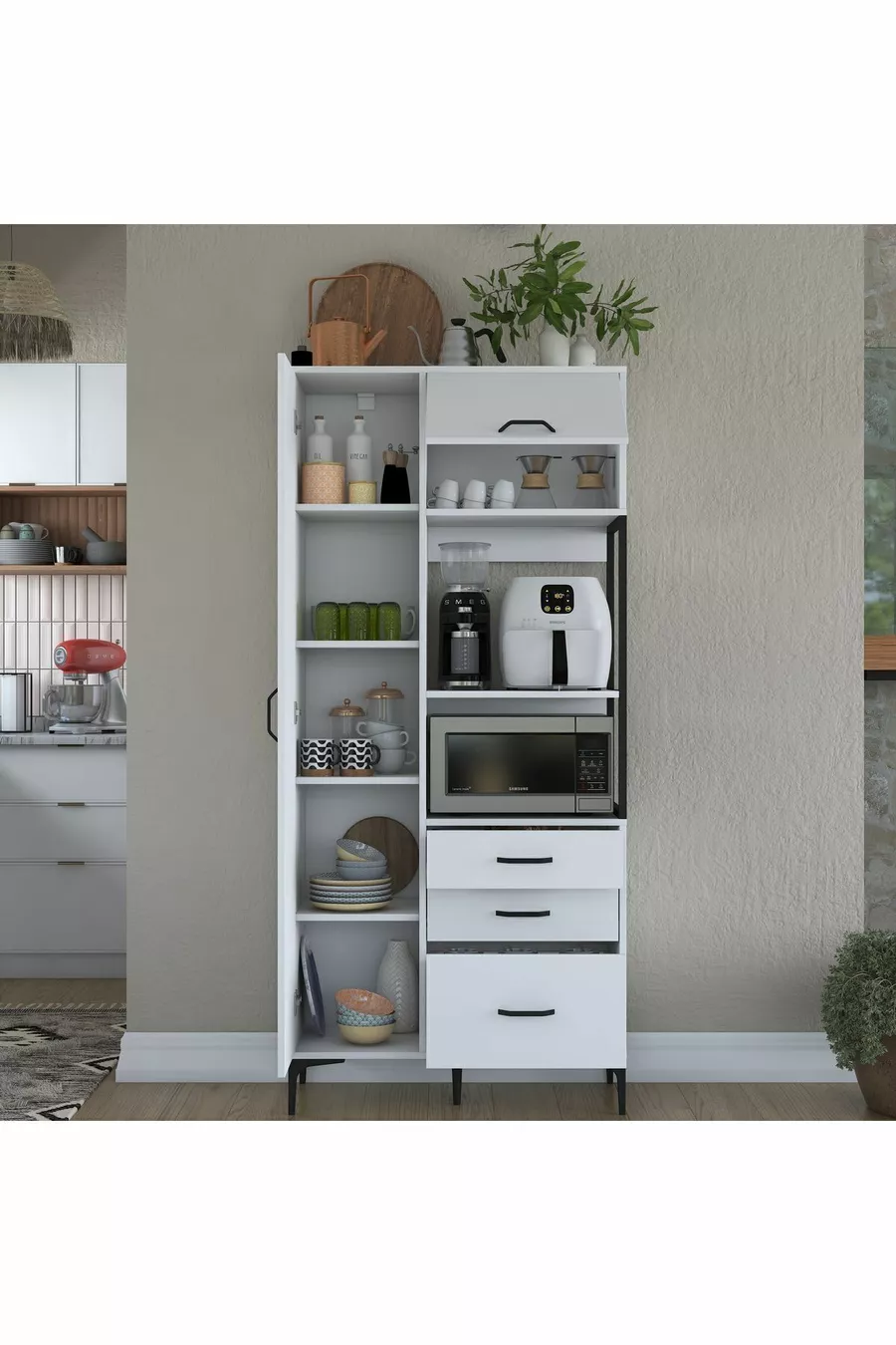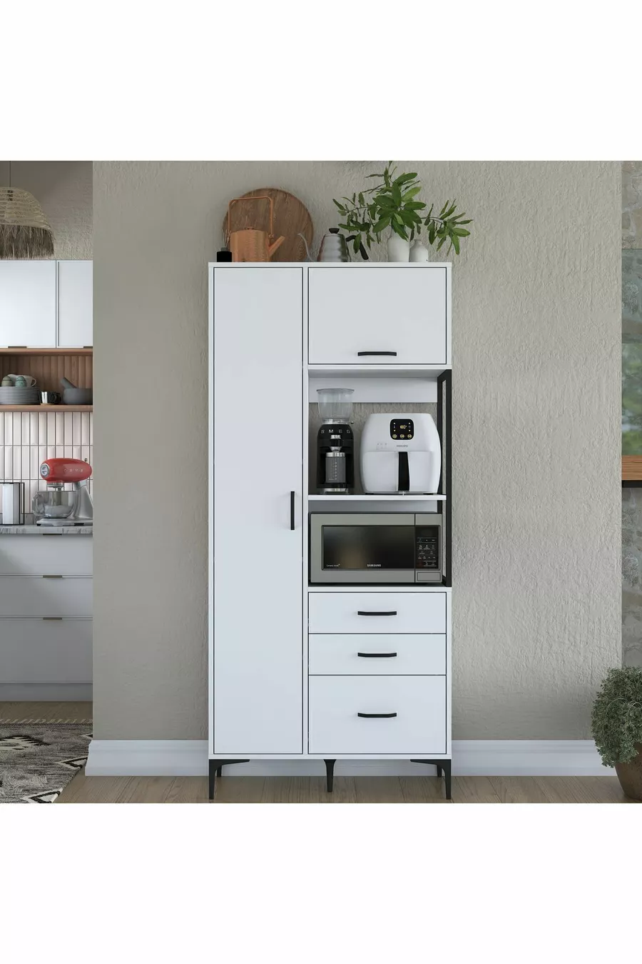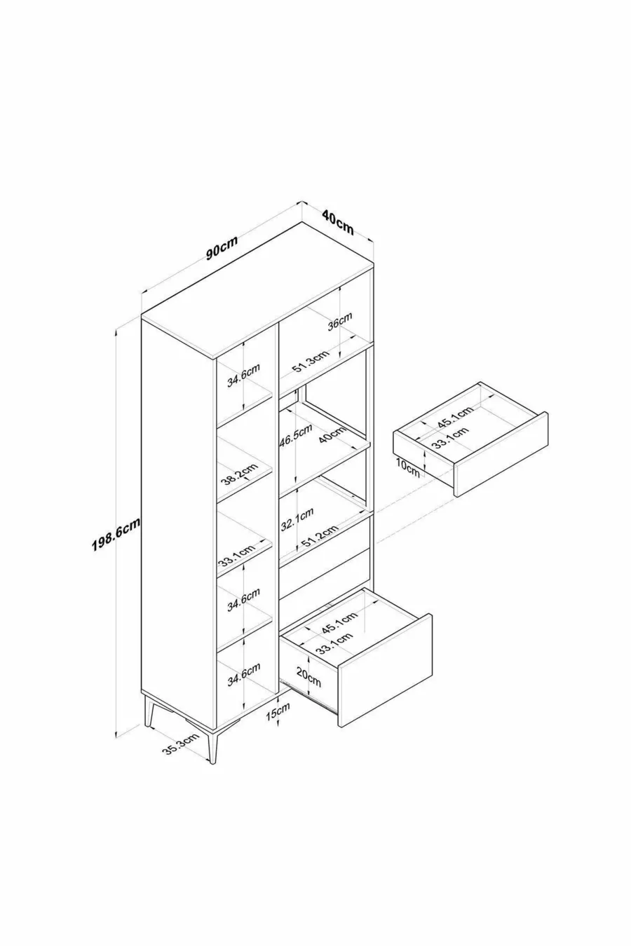 Material: Chipboard Number of Drawers: Multiple Color: White Model: Vertical Height: 199 cm Width: 90 cm Depth: 40 cm Warranty Period: 2 Years Style: Modern Theme / Style: Modern Origin: TR Feature: With Drawers