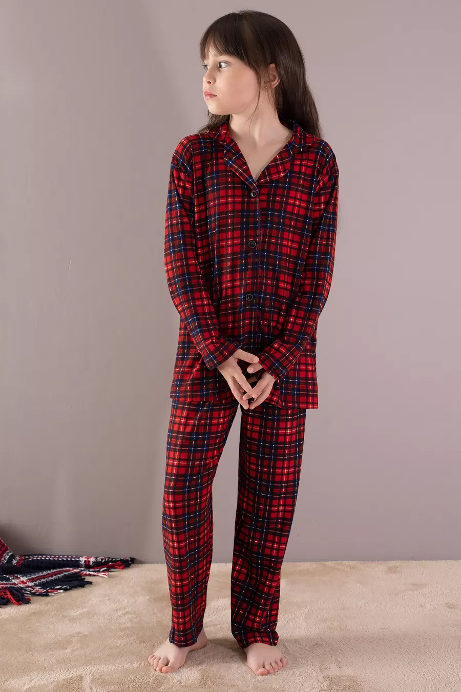 Sleeve Type: Standard Sleeve Sustainability Detail: No Pattern: Plaid / Checkered Collar Type: Button Collar Cuff Length: Long Material: Polyester Color: Red Product Type: Printed Product Detail: Buttoned Collection: Young Top-Bottom Set: Sweatshirt-Jogger Sleeve Length: Long Technique: None Fit: Regular Fabric Type: Woven Waist: Regular Waist Weave Type: 2-Ply Number of Pieces: 2 Silhouette: Basic Persona: Young Occasion: Casual Additional Feature: No Additional Feature Material Composition: Polyester Washing Instructions: Type 1 Pant Leg Type: Straight Leg Package Contents: 2 Pieces Height: Regular Season: Spring / Autumn Origin: TR Closure Type: Tie / Drawstring