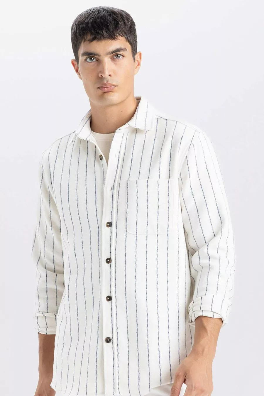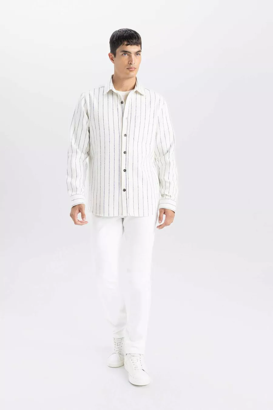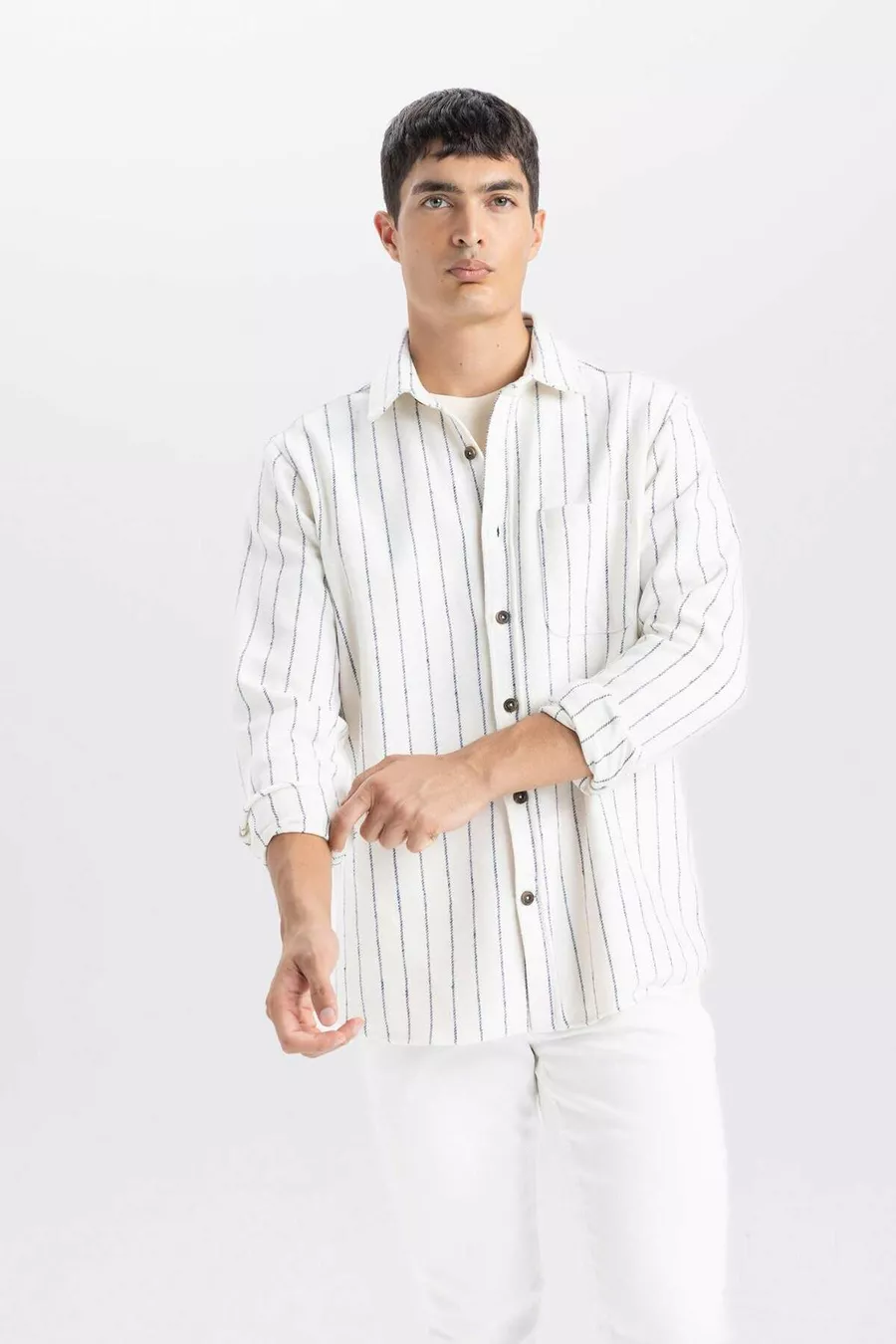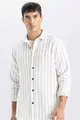 Pattern: Striped Fit: Regular Collar Type: Polo Collar Fabric Type: Woven Sleeve Type: Standard Sleeve Color: Beige Material: Acrylic Closure Type: Buttoned Pocket: With Pocket Sleeve Length: Long Length: Standard Occasion: Casual/Everyday Silhouette: Basic Print/Embroidery Technique: Without Print Persona: Fashion Forward Sustainability Detail: No Belt/Strap Status: Without Belt Material Composition: 66% Cotton, 27% Polyester, 6% Viscose, 1% Acrylic Washing Instructions: Type 1 Origin: TR Box Status: No Box