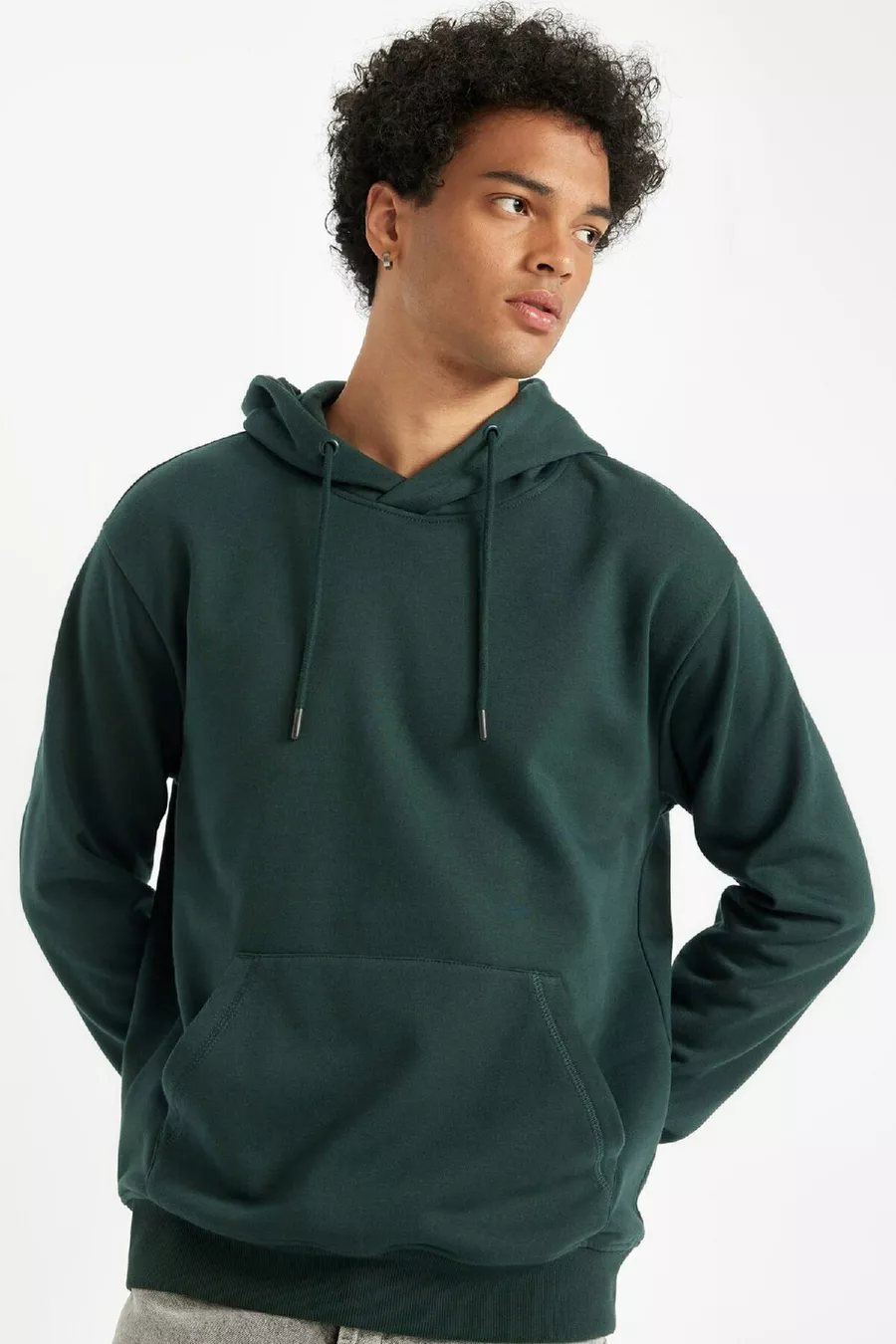 Regular Fit Hooded Kangaroo Pocket Soft Fleece-Lined Basic Plain Sweatshirt AU