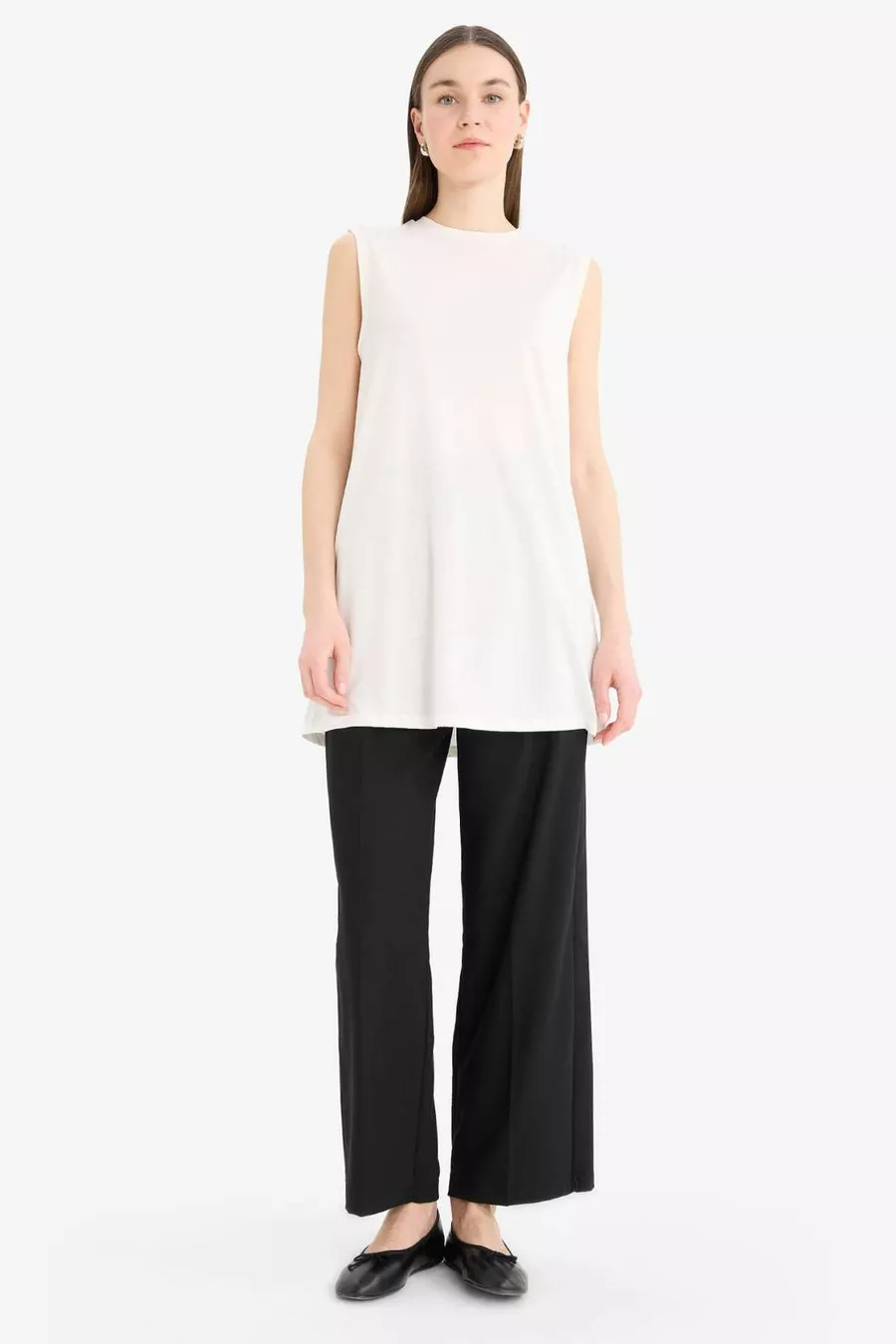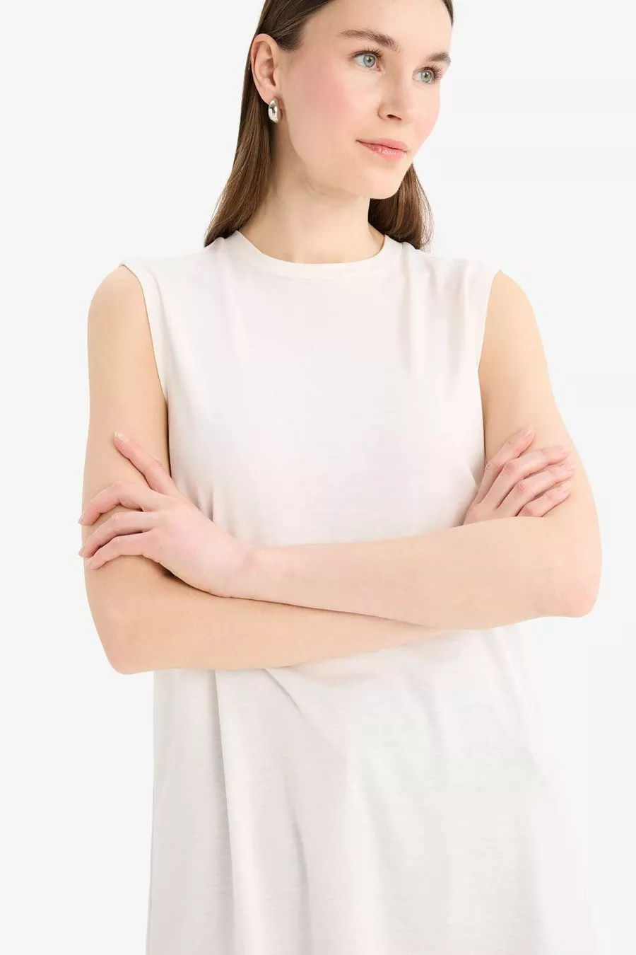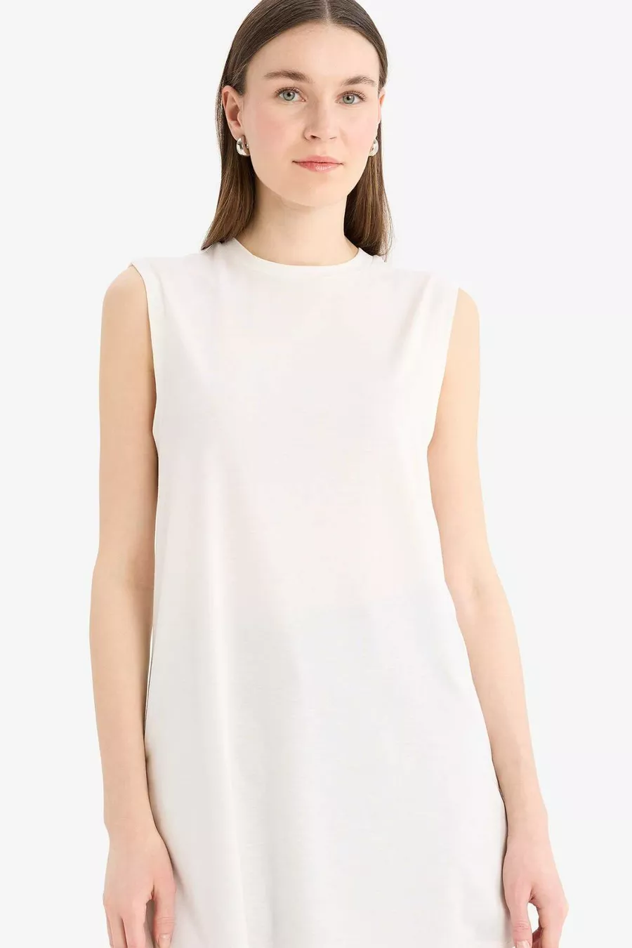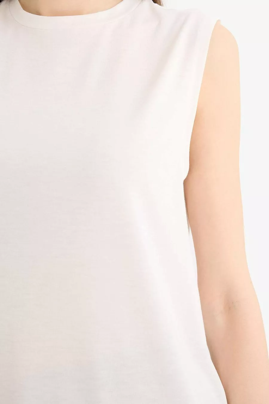 Material: Viscose Fabric Type: Knitted Sleeve Type: Standard Sleeve Pattern: Solid Fit: Regular Neck Type: Crew Neck Color: Ecru Product Type: Solid Pocket: Pocketless Sleeve Length: Sleeveless Material Composition: 64% Polyester, 33% Viscose, 3% Elastane Occasion: Casual/Daily Weave Type: Viscose Supreme Length: Standard Washing Instructions: T44 Silhouette: Tunic Sustainability Detail: No Origin: TR Box Condition: No box