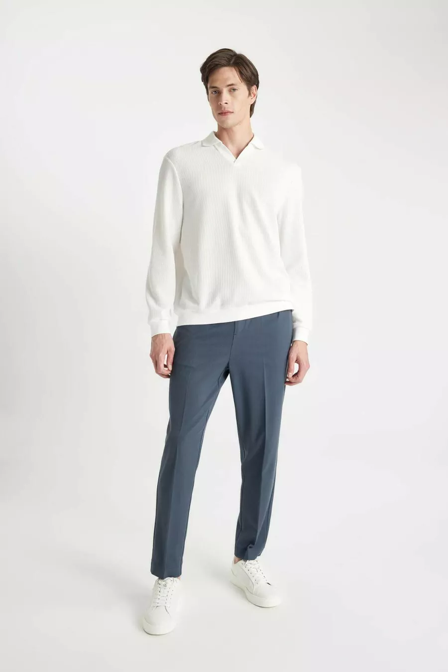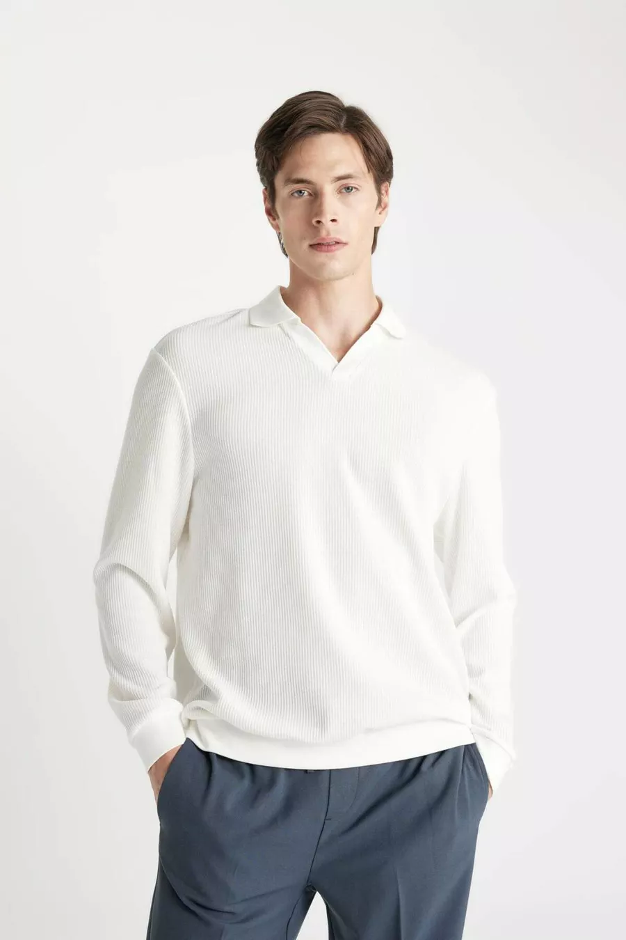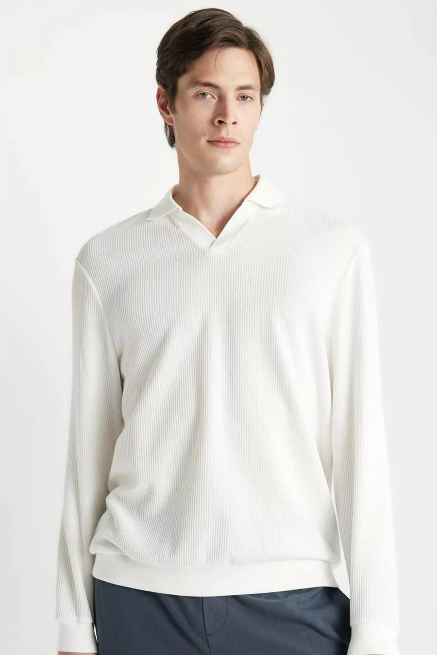 Sleeve Type: Standard Sleeve Box Condition: No Box Pattern: Jacquard Fit: Regular Collar Type: Polo Collar Color: White Fabric Type: Knitted Material: Cotton Closure Type: Buttoned Pocket: No Pocket Product Detail: Buttoned Sleeve Length: Long Collection: Basic Package Contents: Single Occasion: Casual/Daily Length: Standard Silhouette: Regular Additional Feature: No Additional Feature Weave Type: Jacquard Persona: Cool & Comfort Print/Embroidery Technique: No Print Sustainability Detail: No Material Composition: 55% Cotton, 45% Polyester Washing Instructions: Type 3 Origin: TR Number of Pieces: 1