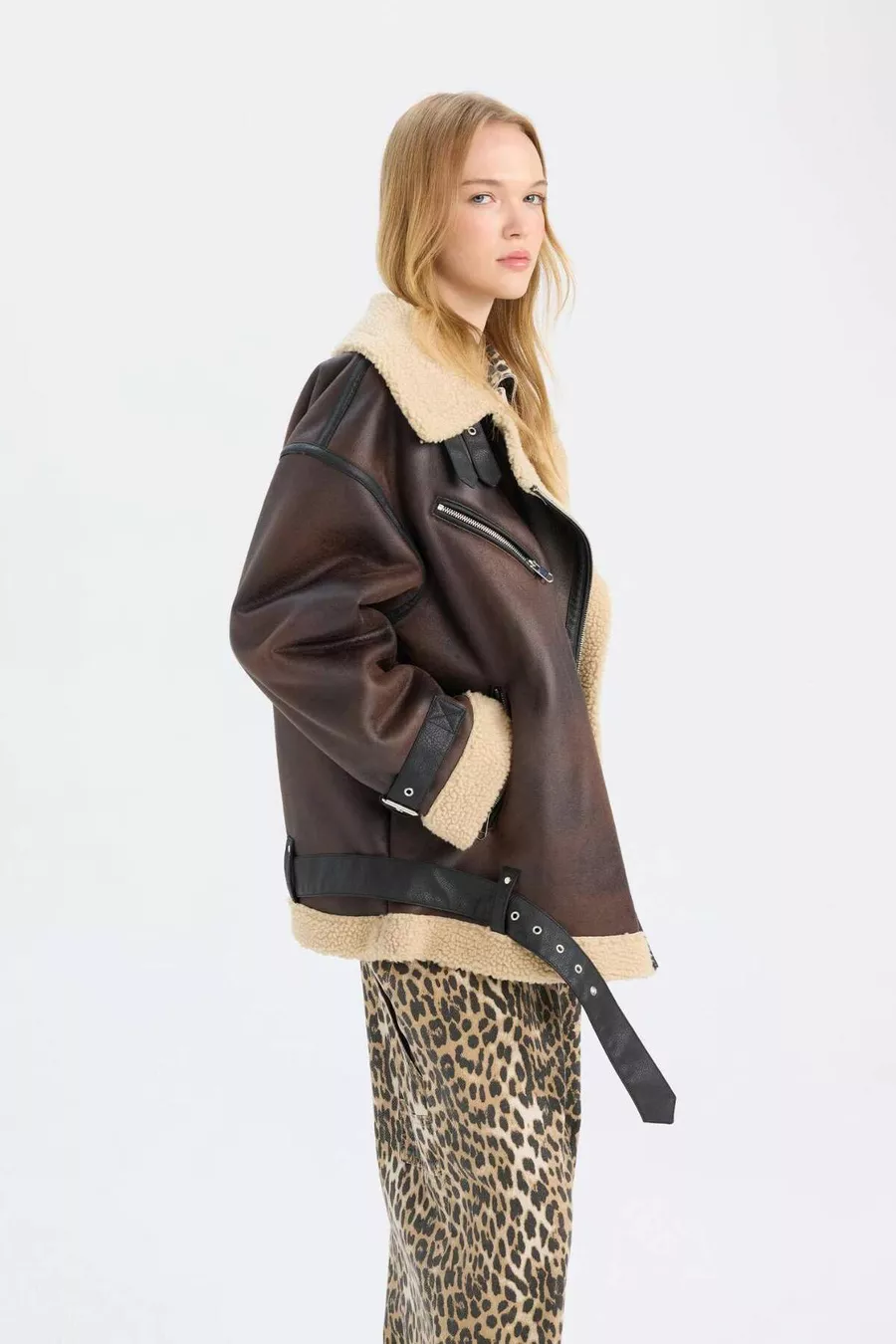 Sleeve Type: Standard Sleeve Pattern: Plain Fit: Relaxed Collar Type: Double-breasted Material: Fabric Fabric Type: Woven Color: Brown Closure Type: Zippered Product Detail: Lined Pocket: No pockets Sleeve Length: Long Lining Status: Lined Length: Standard Silhouette: Double-breasted Occasion: Casual/Daily Additional Feature: No Additional Feature Weave Type: Plush Sustainability Detail: No Belt/Sash Status: With Belt Product Type: Plain Material Composition: 100% Polyester Washing Instructions: T09 Origin: TR Box Status: No Box