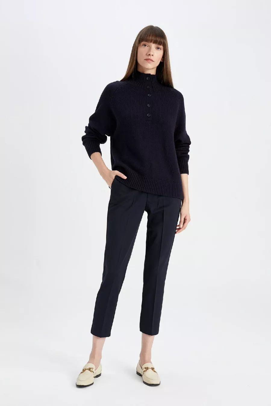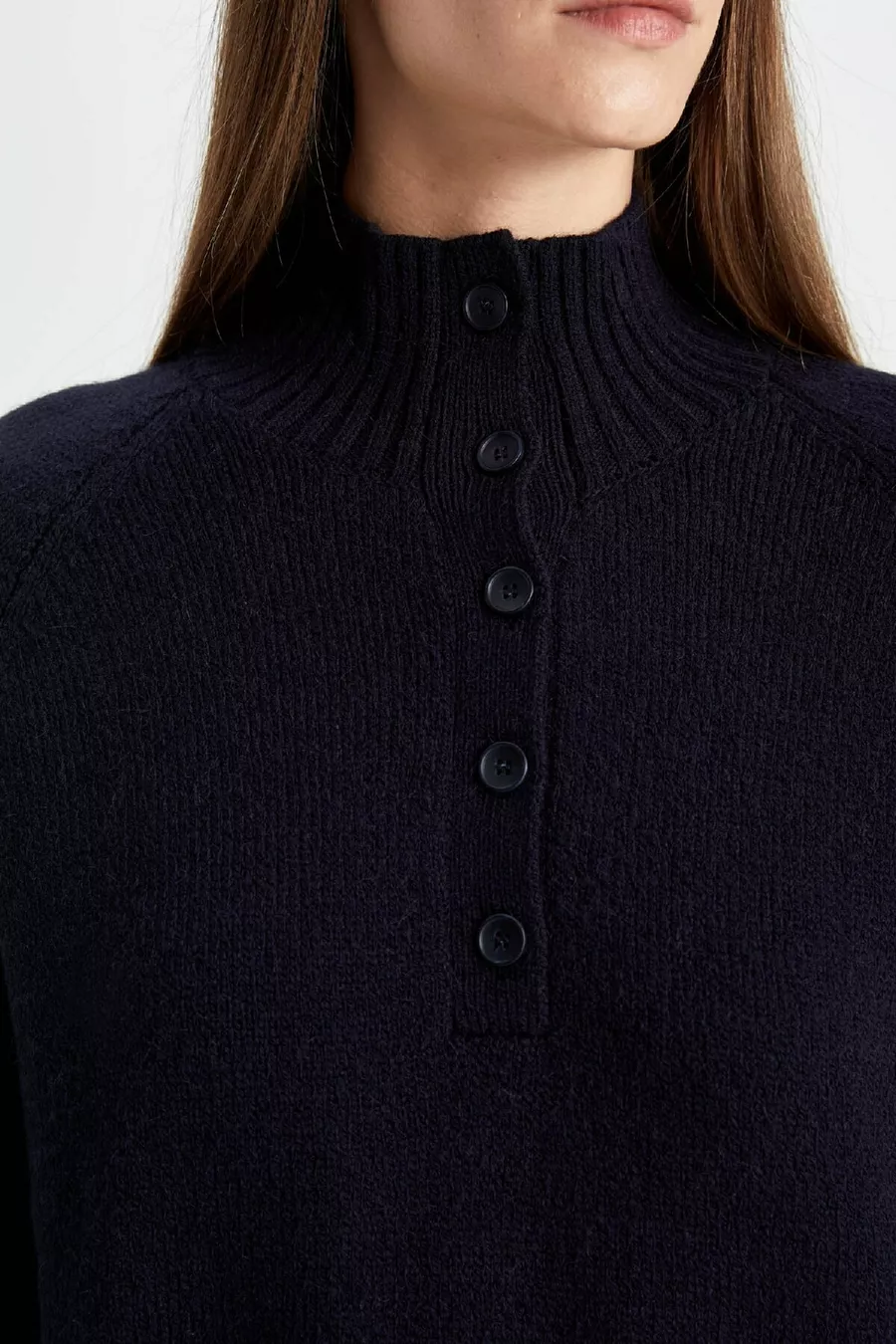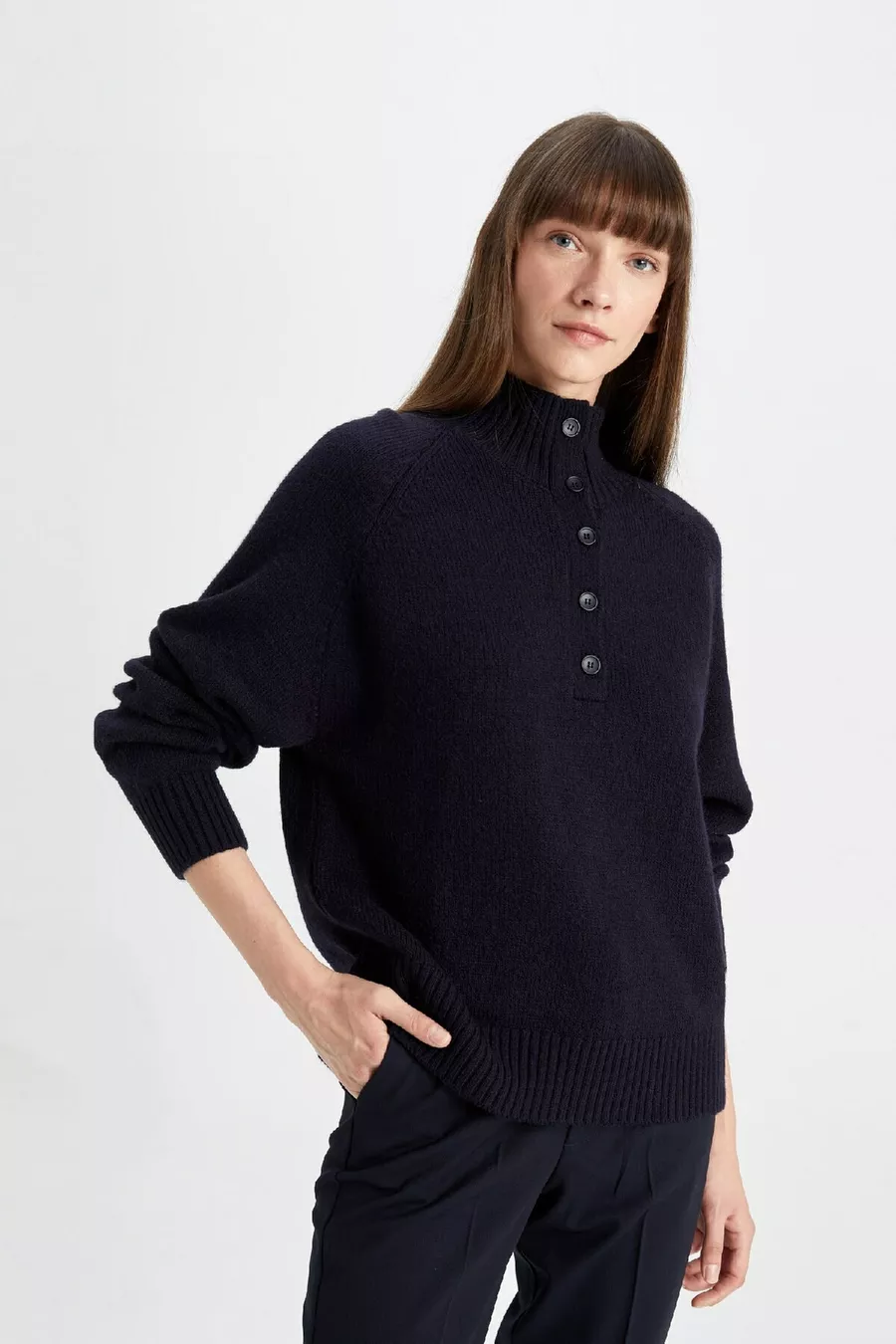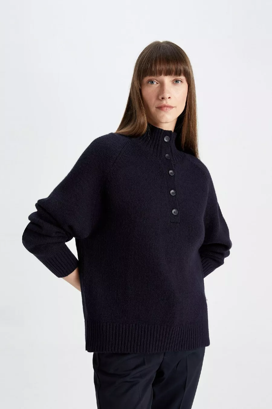 Pattern: Plain Fit: Relaxed Neck Type: Buttoned Neck Fabric Type: Knit Color: Navy Material: Acrylic Sleeve Type: Standard Sleeve Pocket: No Pockets Product Detail: Buttoned Product Type: Plain Sleeve Length: Long Thickness: Thin Silhouette: Basic Occasion: Casual/Daily Length: Standard Print/Embroidery Technique: No Print Persona: Fashion Forward Sustainability Detail: No Belt/Waistband Status: Without Belt Material Composition: 85% Acrylic, 9% Polyester, 6% Polyamide Washing Instructions: Type 0 Origin: TR Box Condition: No Box