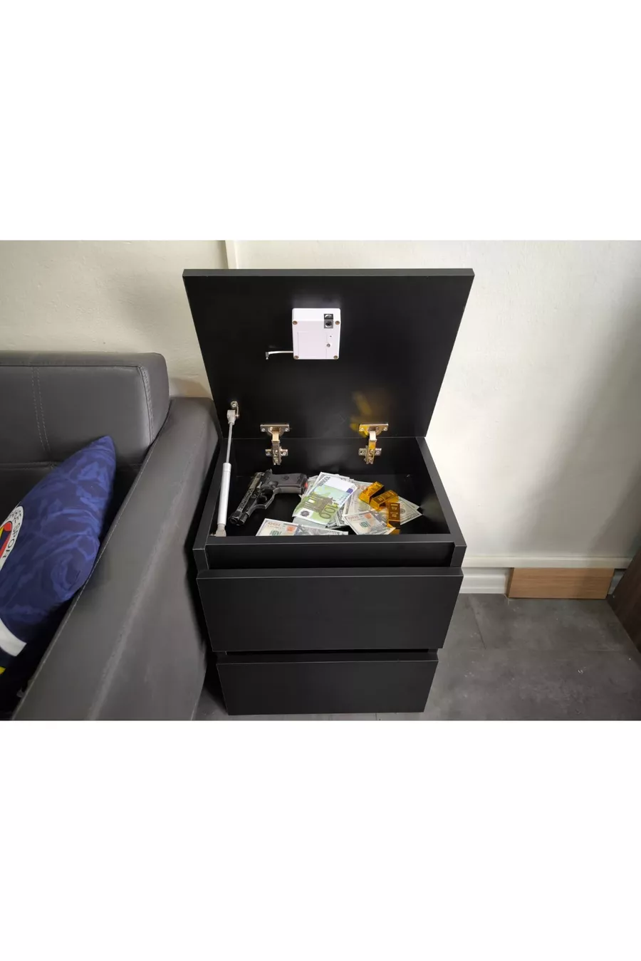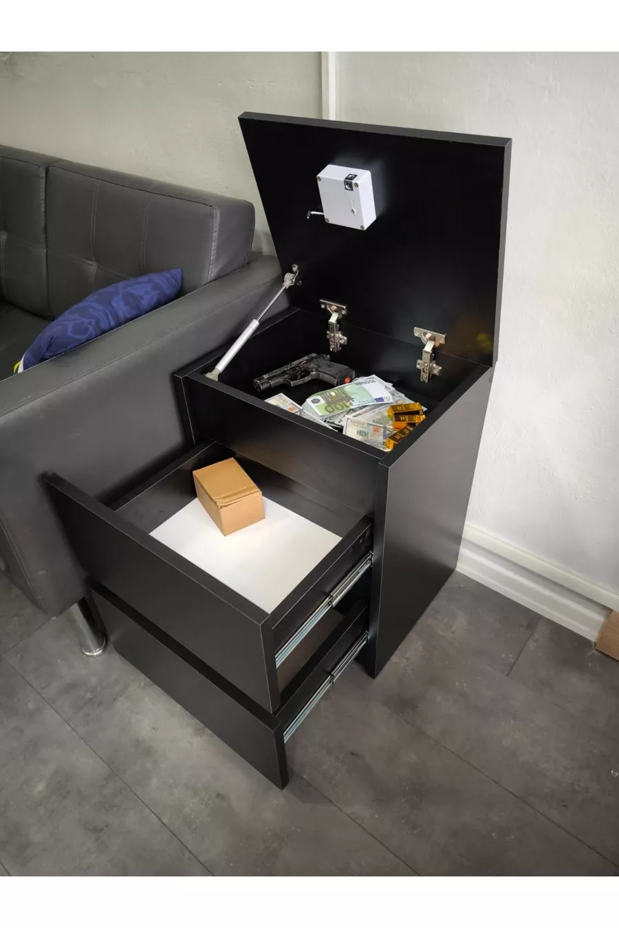 Material: MDF Color: Black Warranty Period: 1 Year Number of Drawers: 2 Height: 54 cm Width: 44 cm Depth: 36 cm Style: Modern Theme / Style: Modern Origin: TR Feature: With Drawers