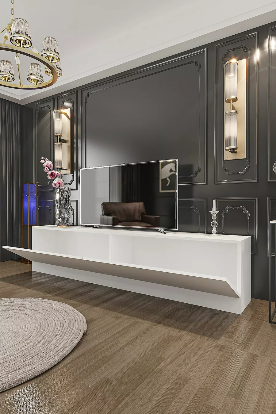 Material: Particleboard Feature: With cabinet Color: White Height: 45 cm Width: 184 cm Depth: 31 cm Warranty Period: 2 Years Style: Modern Theme / Style: Modern