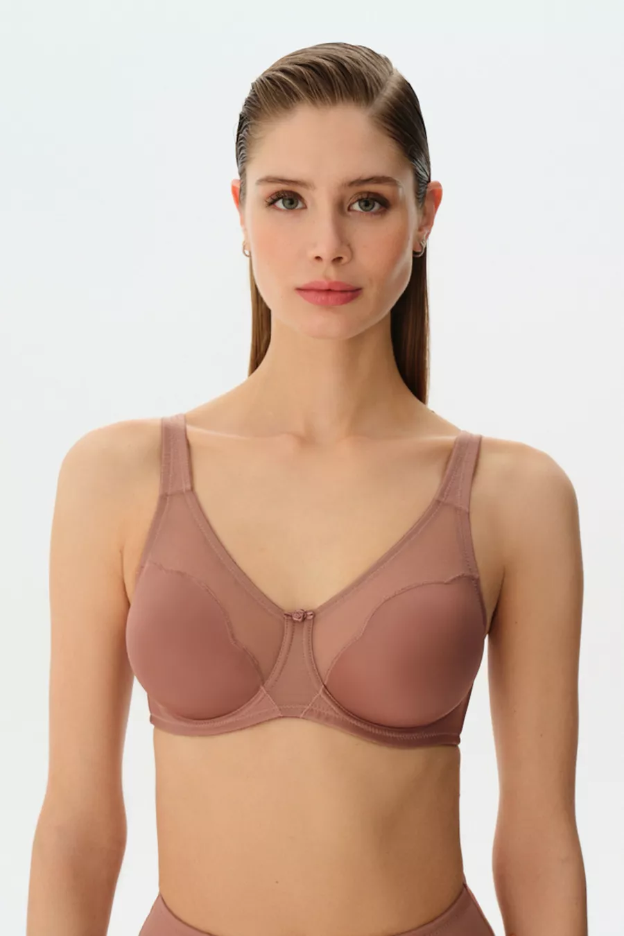 Sustainability Detail: No Material: Polyamide Blend Cup Style: Underwired Sleeve Length: Strappy Color: Brown Package Contents: Single Product Detail: Underwire Pattern: Plain Product Type: Plain Cup: Minimizer Collection: Lingerie Neckline Type: Strappy Neckline Fabric Type: Woven Weave Type: Lace Persona: Feminine Additional Feature: Minimizer Silhouette: Balconette Material Composition: 87% Polyamide, 13% Elastane Setting: Lounge/Home Top Silhouette: Balconette Washing Instructions: Type 1 Origin: TR Box Condition: No box Number of Pieces: 1 Season: All Seasons