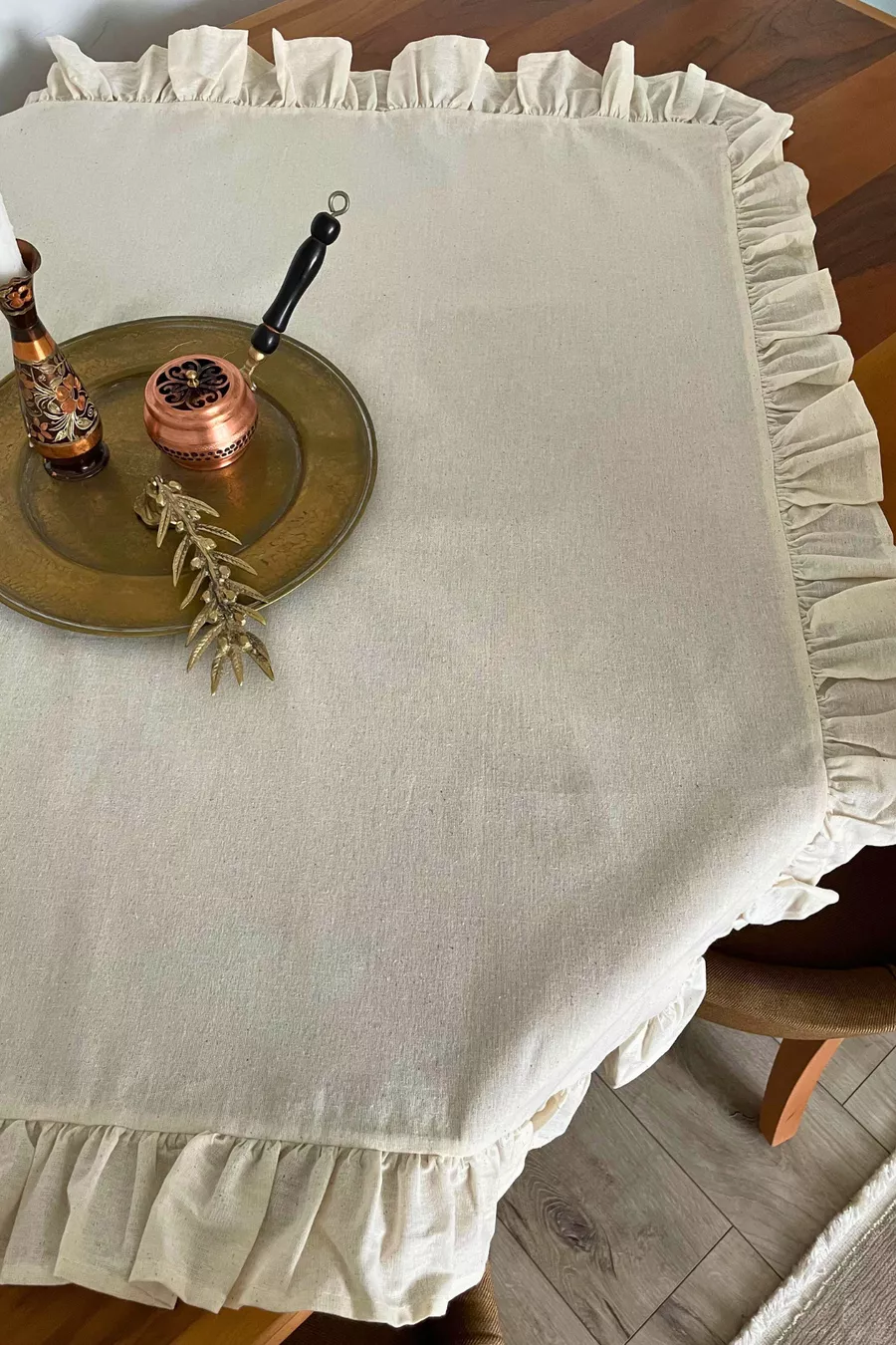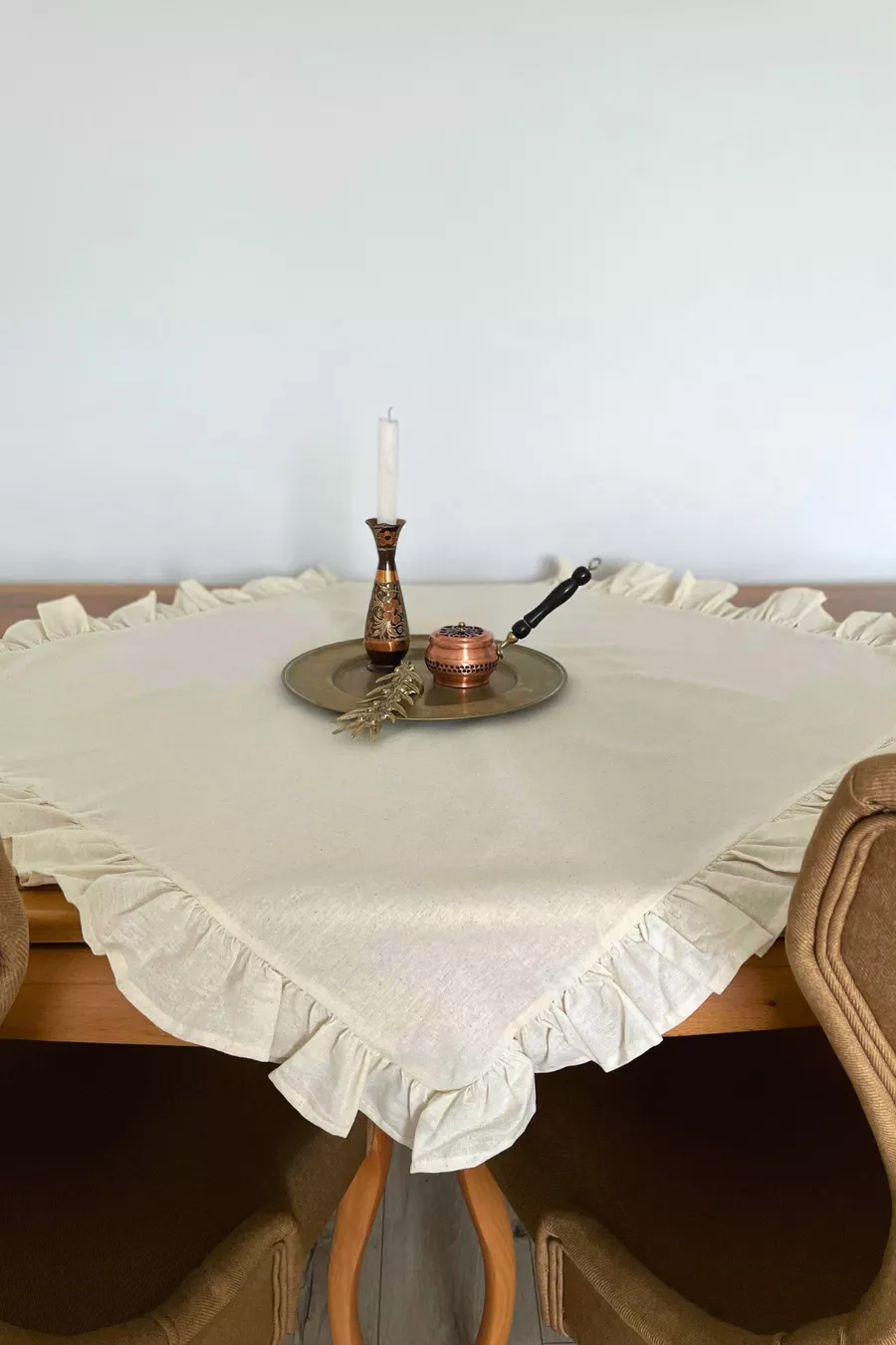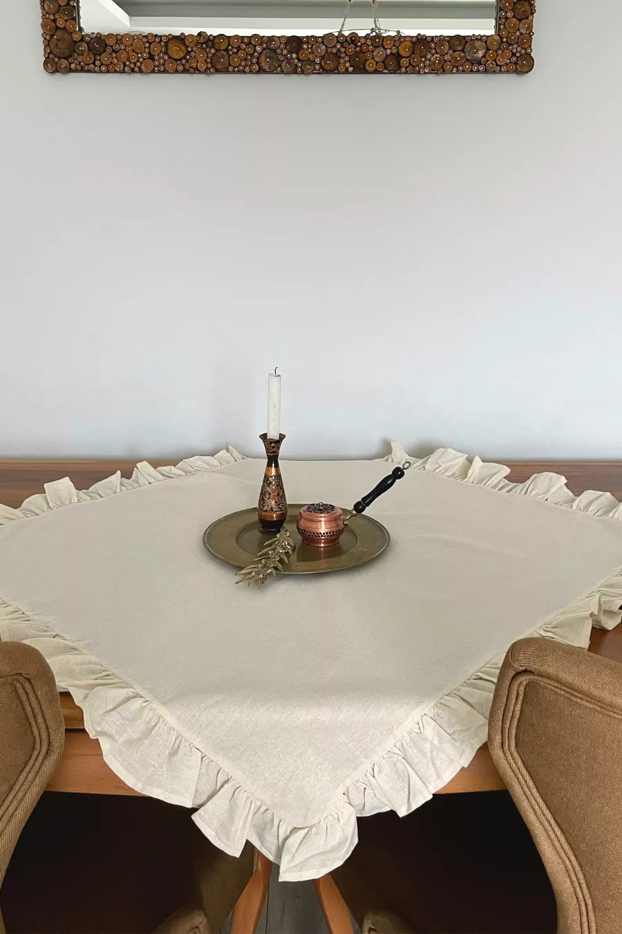 Size/Dimension: 80 x 80 Shape: Rectangle Color: Beige Material: Linen Number of Pieces: 1 Washing Instructions: At 30 DEGREES Material Composition: 80% Cotton, 20% Cotton-Polyester Origin: TR General Care Instructions: Wipe with a damp cloth.
