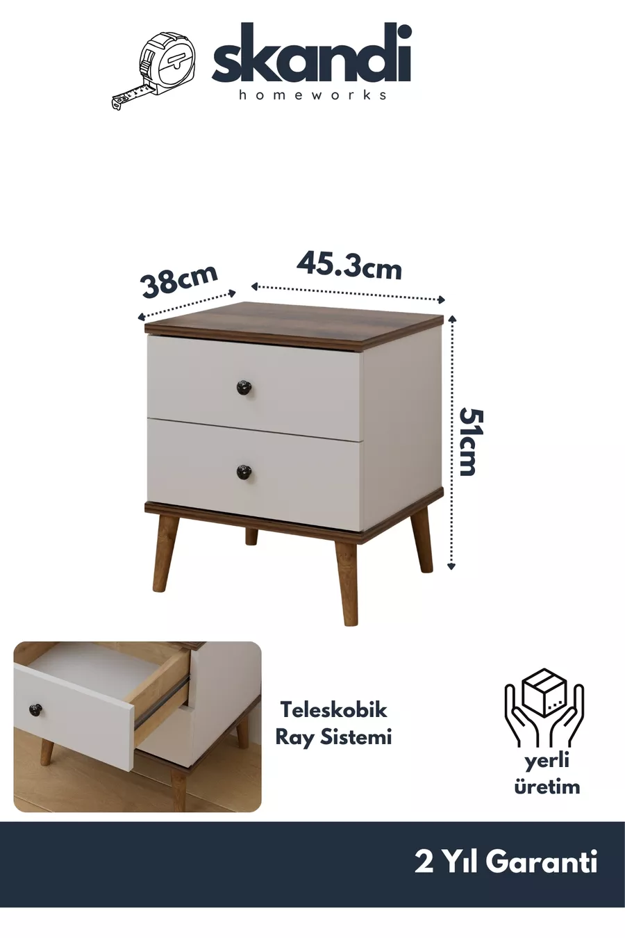 Material: Particleboard Color: Brown Warranty Period: 1 Year Number of Drawers: 2 Height: 51 cm Width: 45 cm Depth: 38 cm Style: Scandinavian Theme / Style: Scandinavian Origin: TR Feature: With drawers