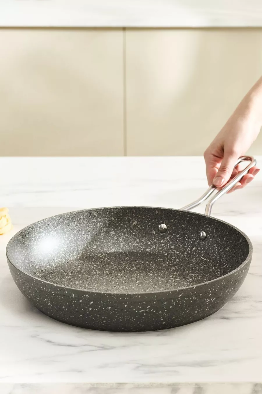 Size/Dimension: 30 cm Number of Pieces: 1 Piece Feature: Non-Stick Base Product Type: Frying Pan Outer Material: Granite Inner Material: Granite Origin: TR Material: Granite Color: Gray