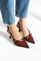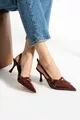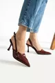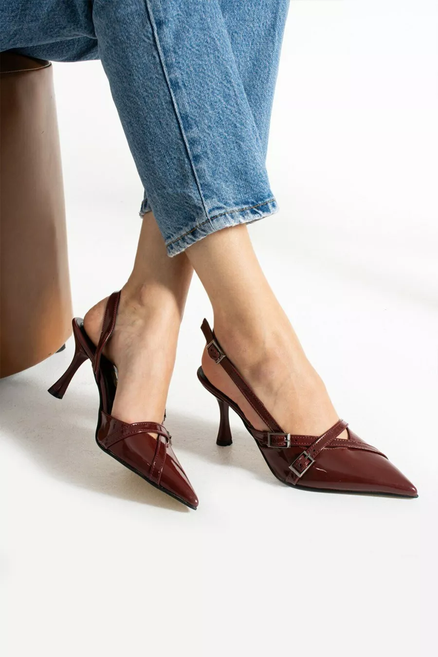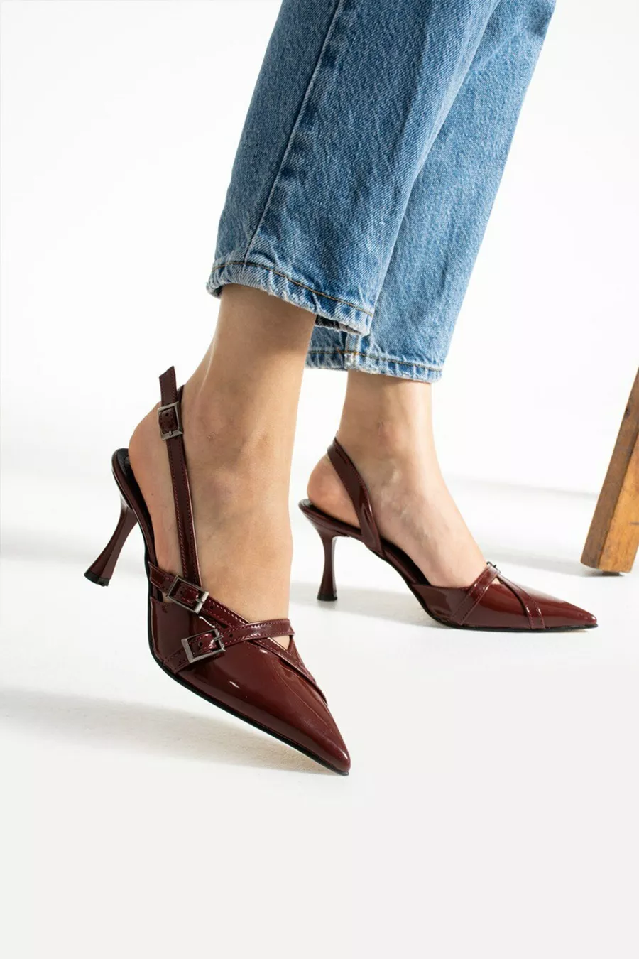 Material: Patent Leather Sustainability Detail: Yes Additional Feature: Washable Heel Type: Stiletto Heel Height: Mid Heel (5-9 cm) Color: Burgundy Insole Material: Synthetic Leather Outsole Material: Neolite Lining Material: Synthetic Leather Closure Type: Strapped Upper Material: Synthetic Leather Persona: Sexy Material Composition: 100% Synthetic Leather Occasion: Day / Night Washing Instructions: Type 4 Pattern: Plain Fabric Type: Not Specified Collection: Party Product Detail: Synthetic Leather Toe Type: Pointed Origin: TR Box Condition: No Box Fit: Regular Season: All Seasons Exterior Material: Synthetic Leather