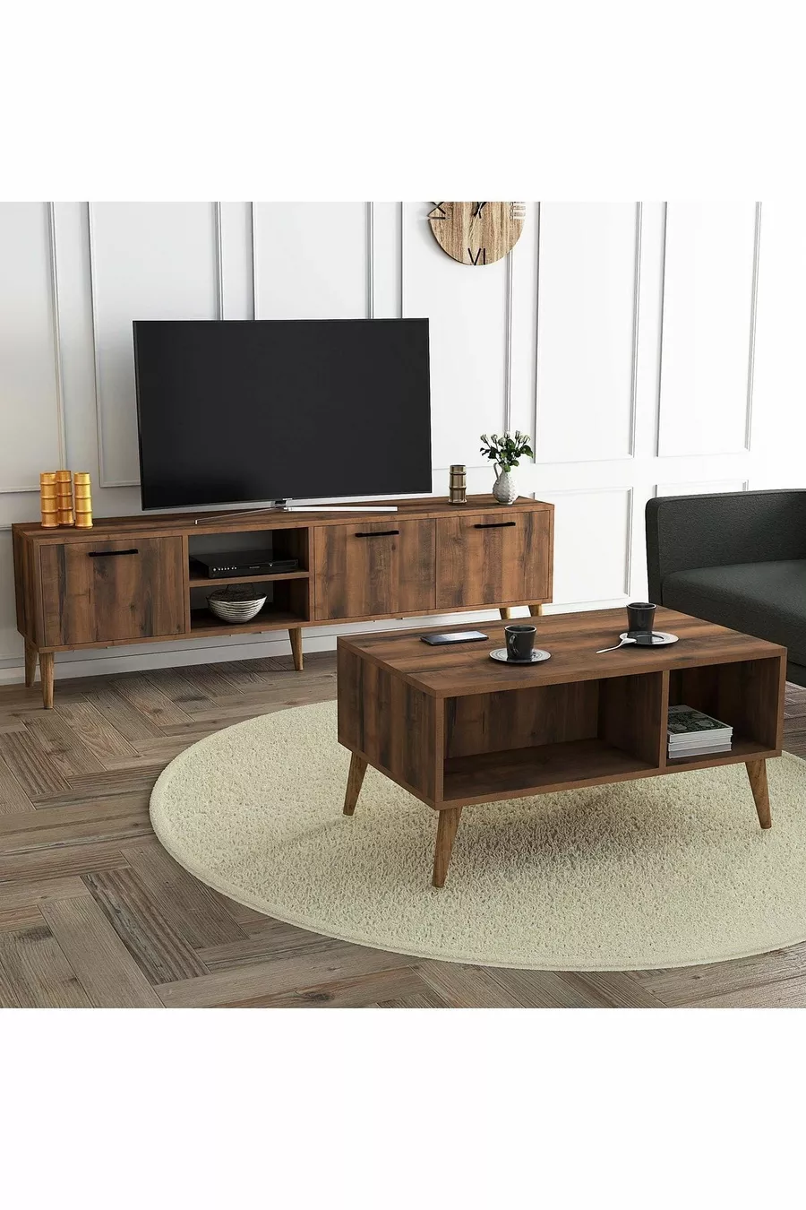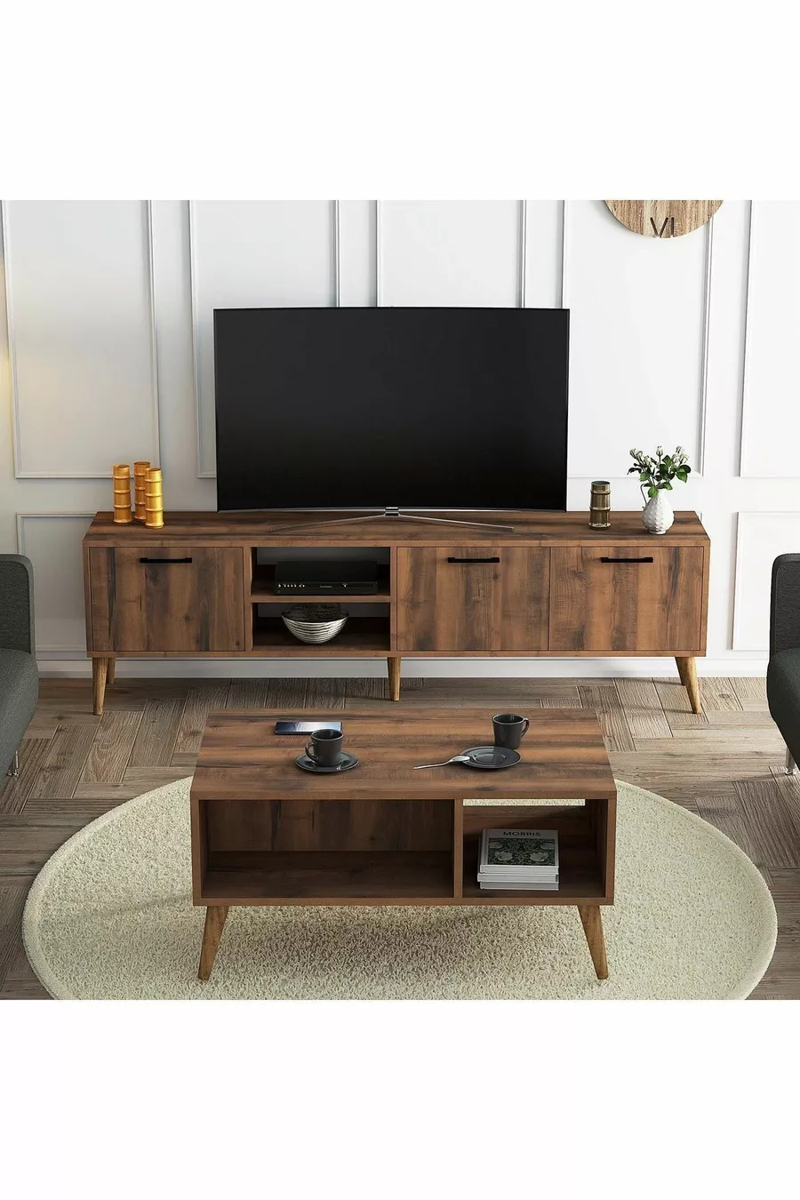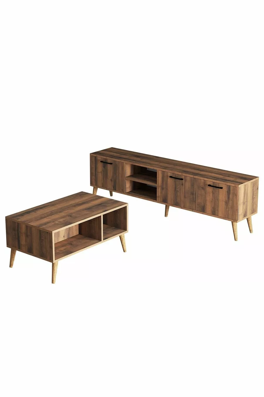 Set Exxen Cm (WOODEN LEGGED) TV Unit - Coffee Table Set, Wood Tone