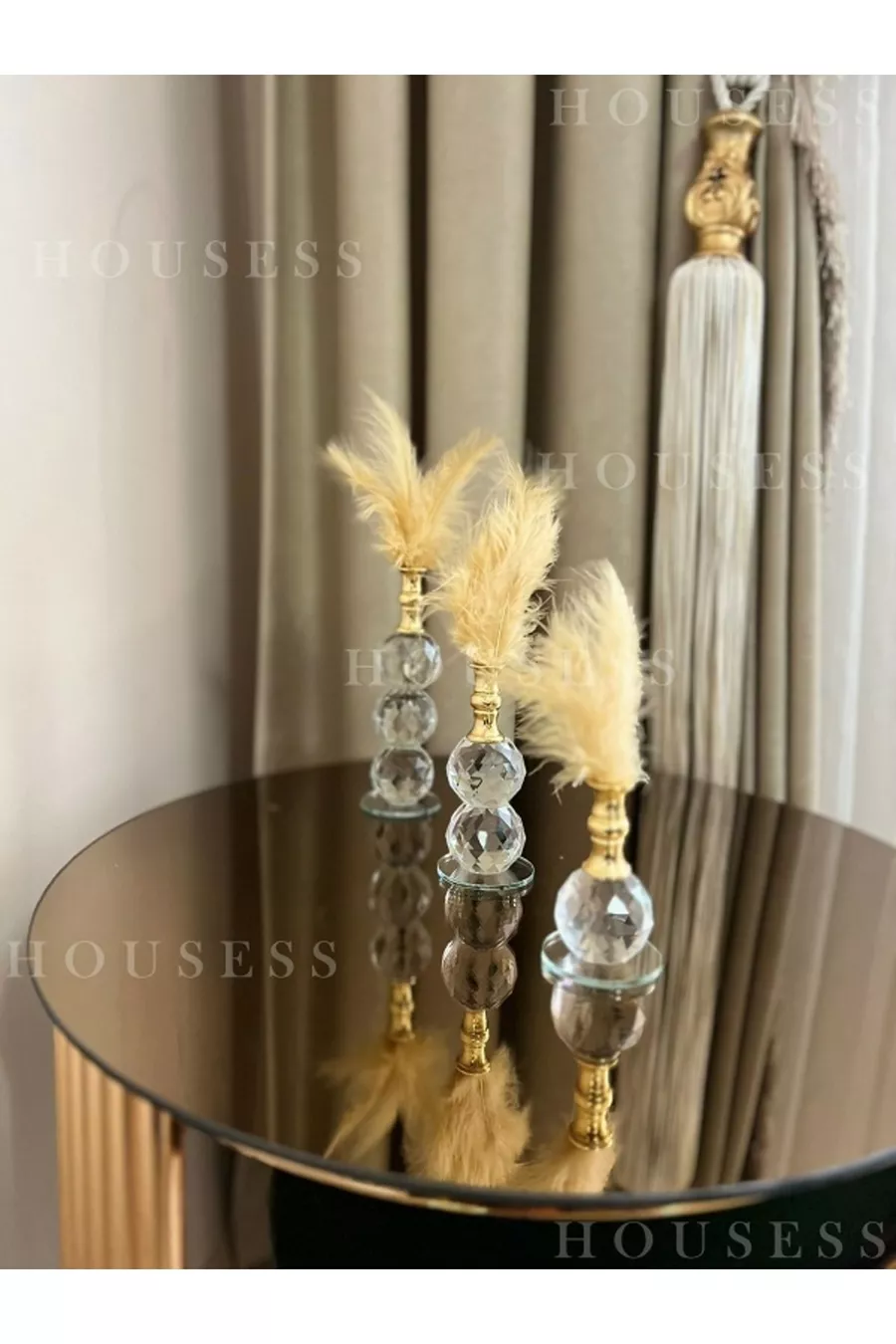 Set of 3 Gold Furry Crystal Ball Pen Holders Decorative Figurines