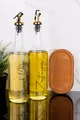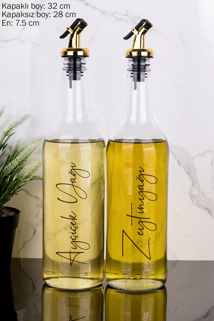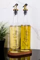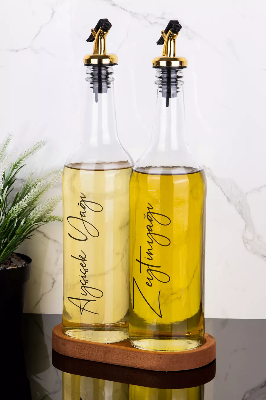 Set of 2, ml Sunflower Oil and Olive Oil Bottles with Wooden Stand, Glass Oil Dispenser with Gold Cap