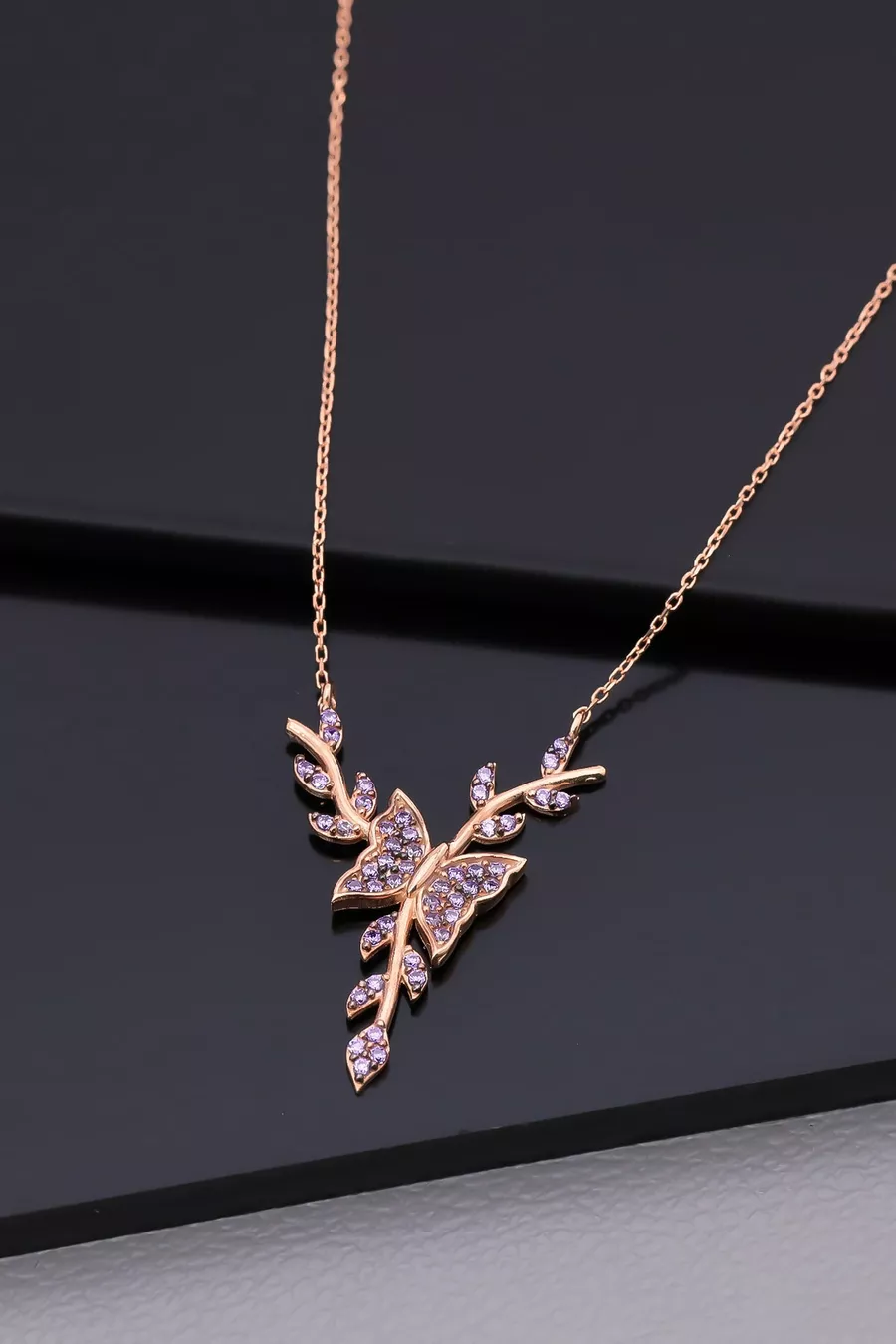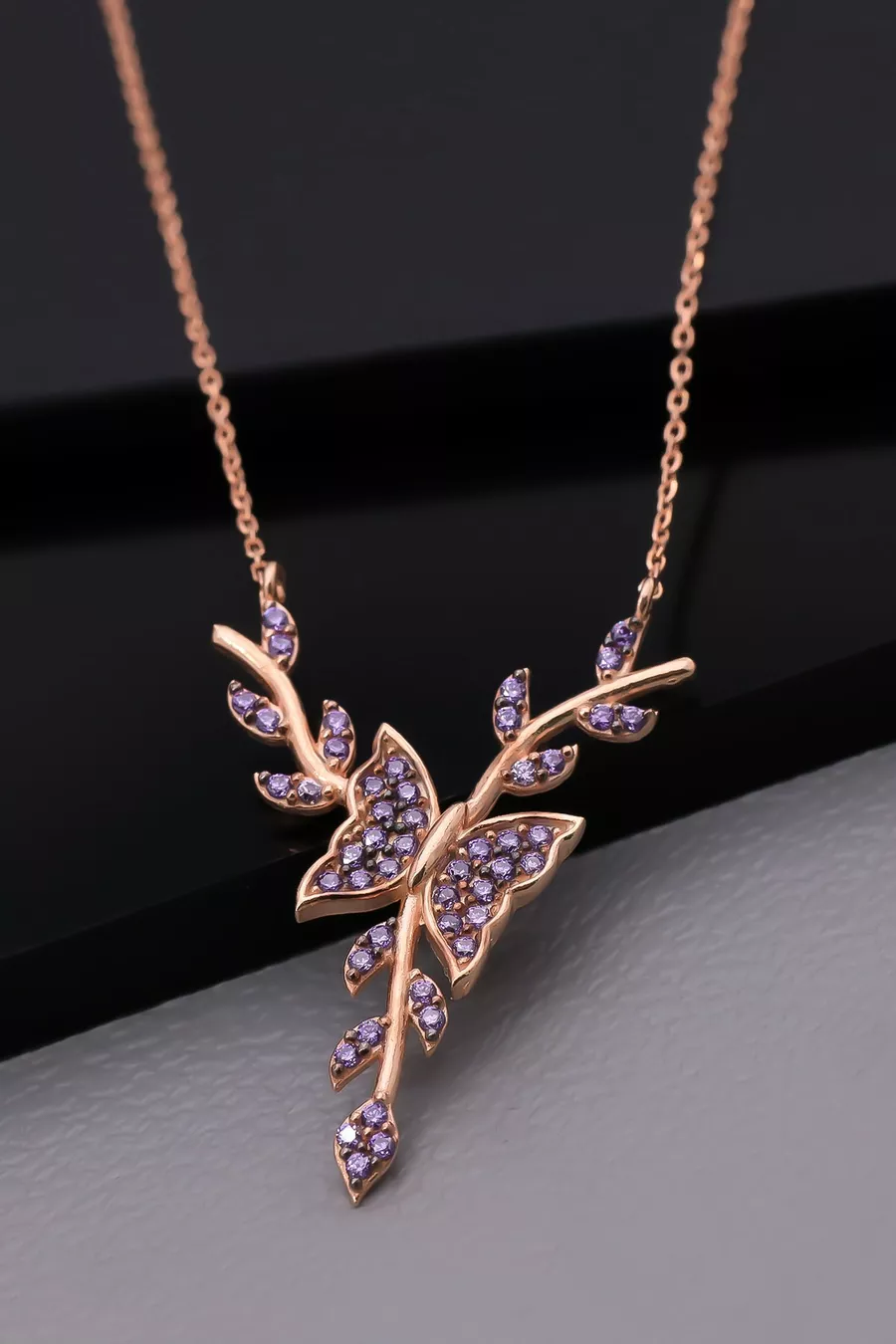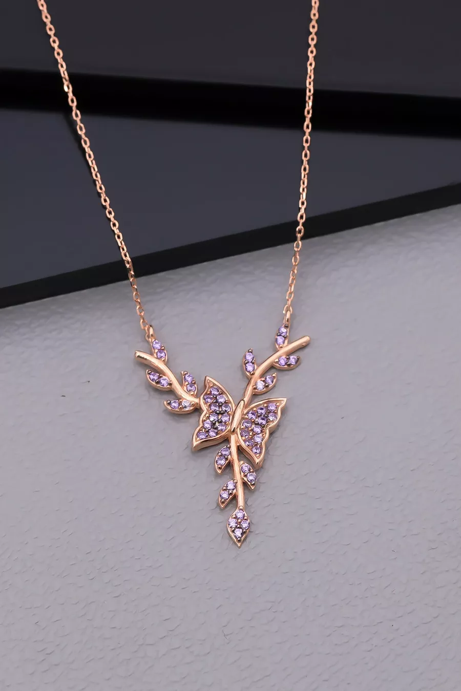 Setting Silver Amethyst Stone Bud Butterfly Necklace