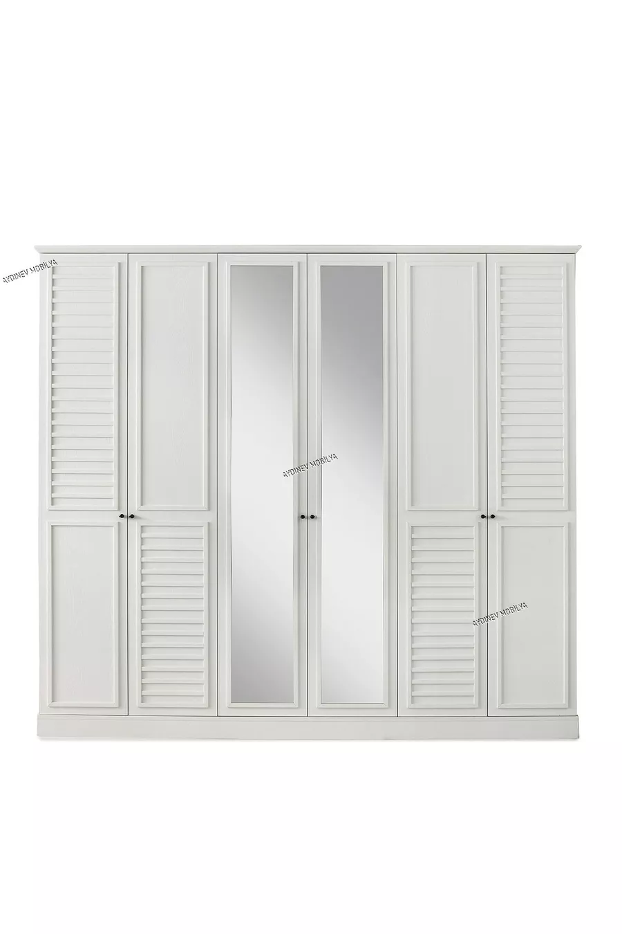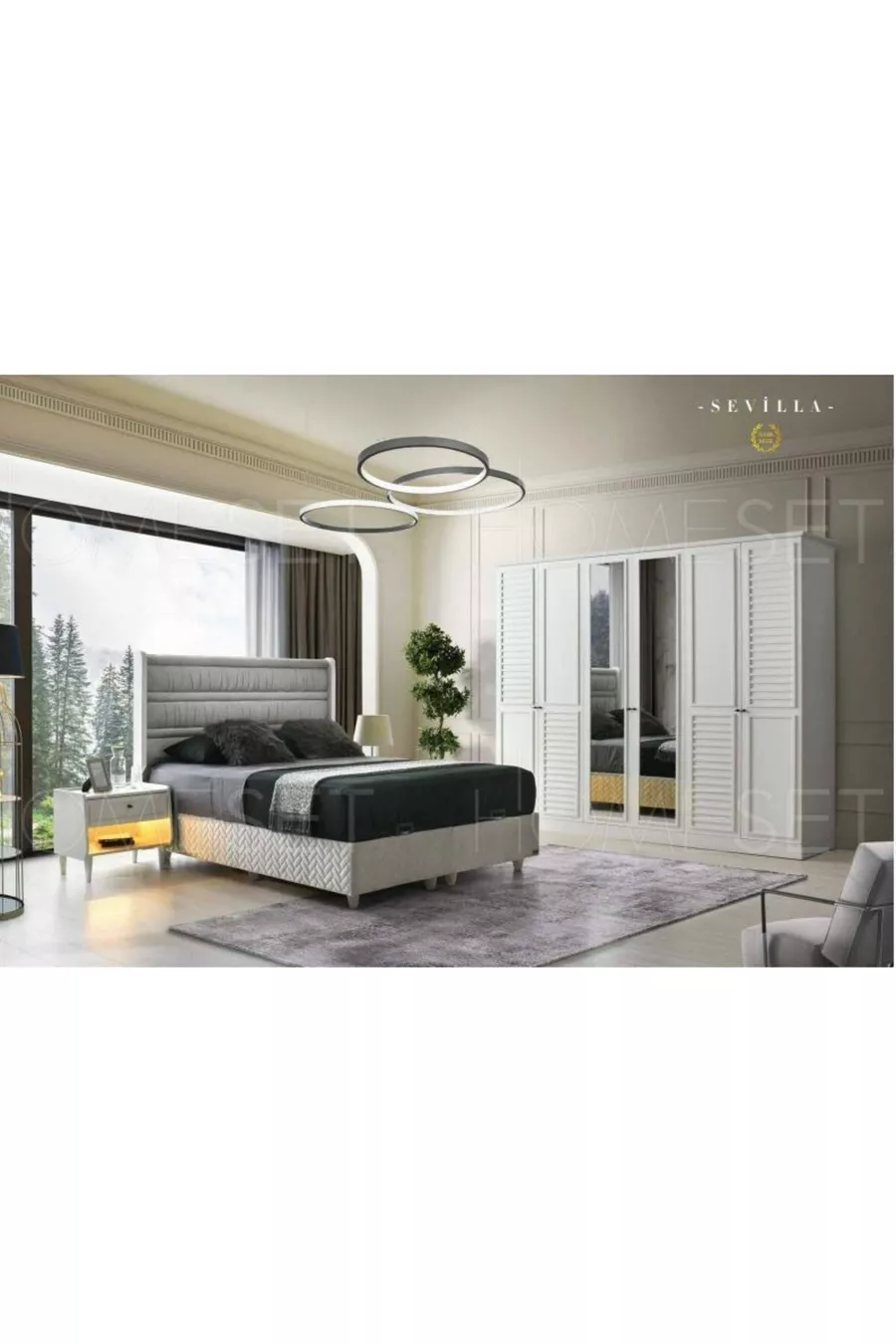 Color: White Warranty Period: 2 Years Bed/Base Size: 160 x 200 Bed Function: Without Base Wardrobe Function: With Doors Wardrobe Body Material: MDF Number of Doors: 6 Set Contents: Wardrobe + 2 Nightstands + Dresser + Headboard Style: Modern Theme / Style: Modern Origin: TR