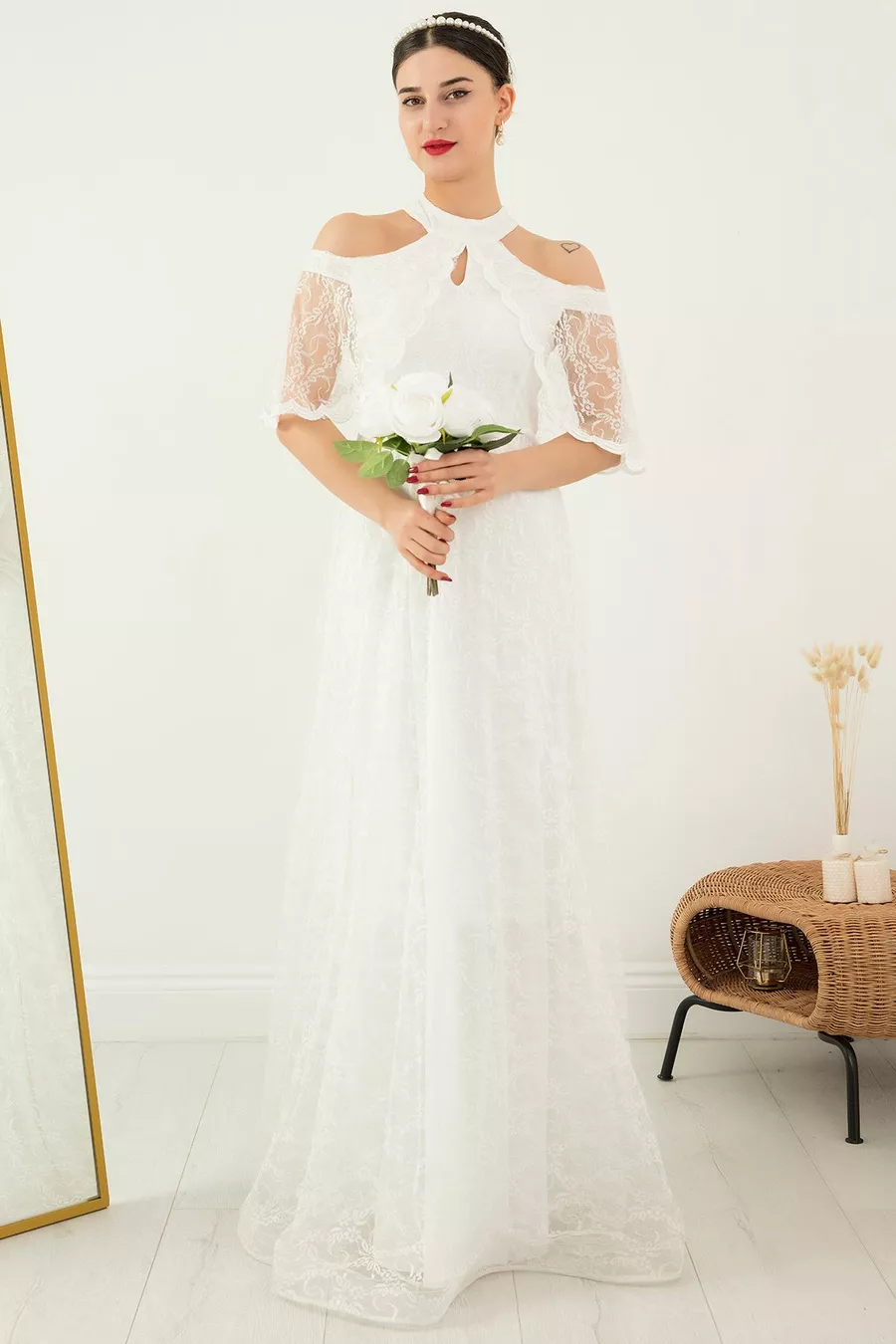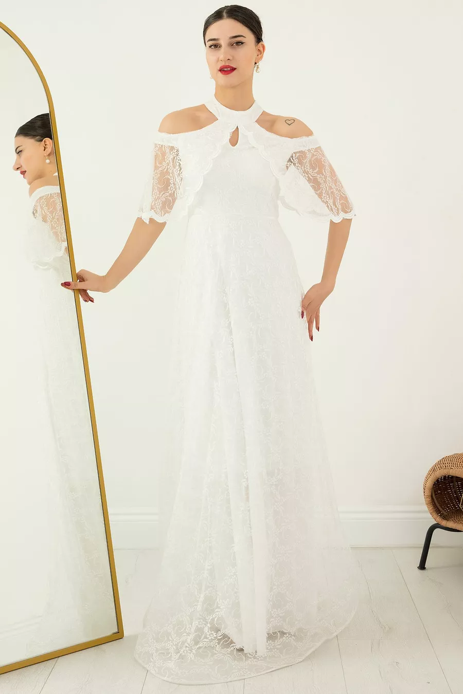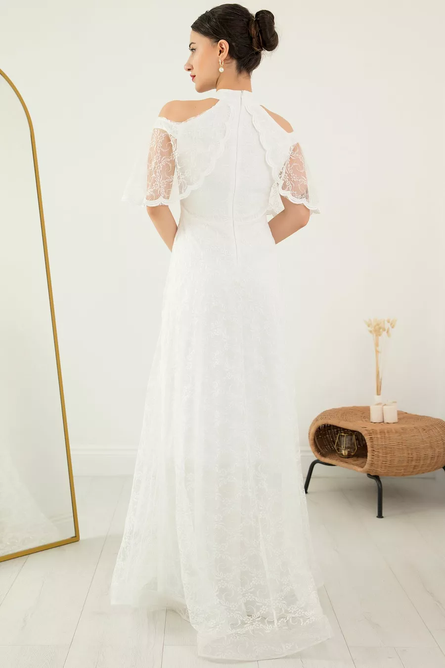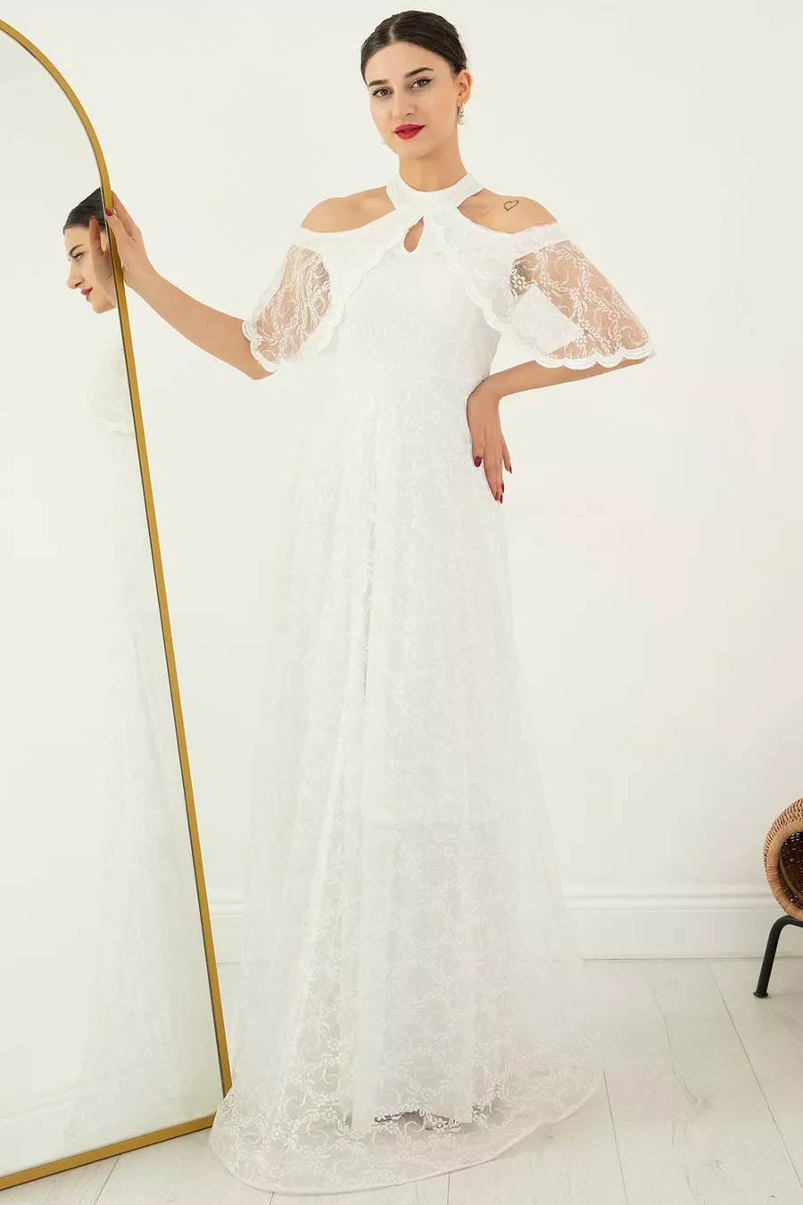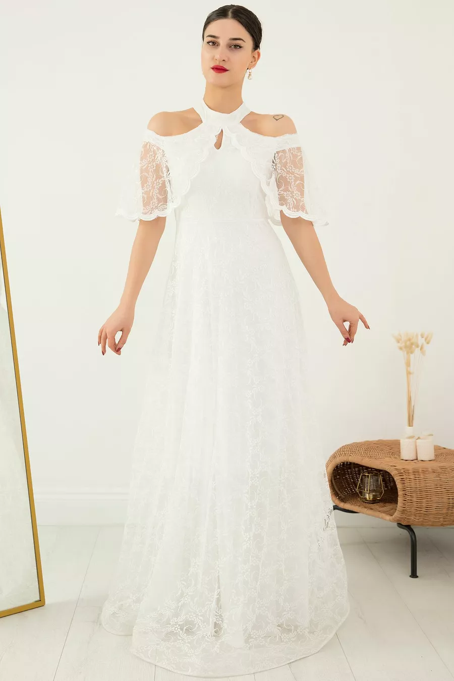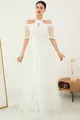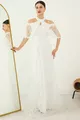 Mold:Regular Fabric Type:Lace Color:Ecru Sleeve Length:Long Size:Maxi Weaving Type:Lace