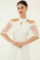 Shoulder Detail Long Lace Evening Dress