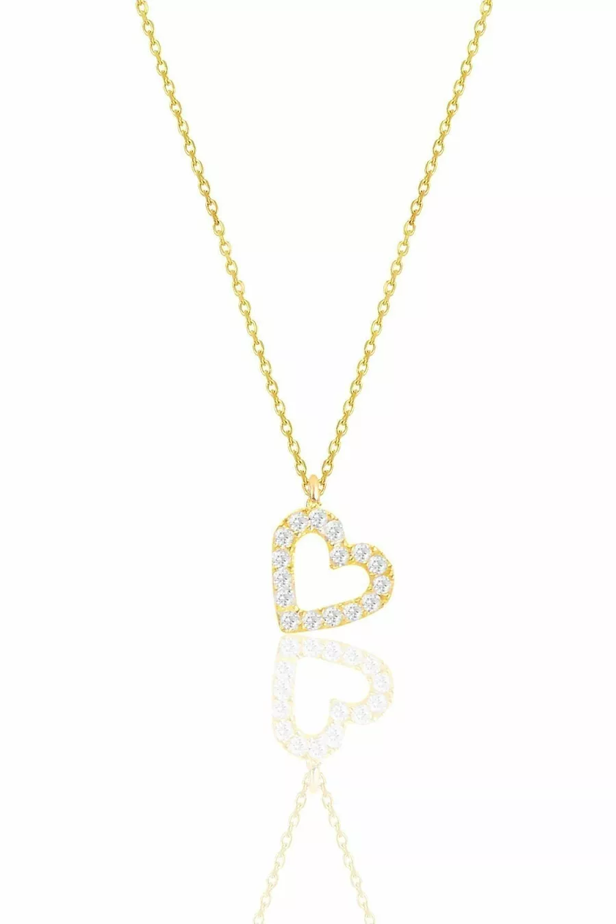 Silver Gold Plated Zircon Stone Heart Necklace gold