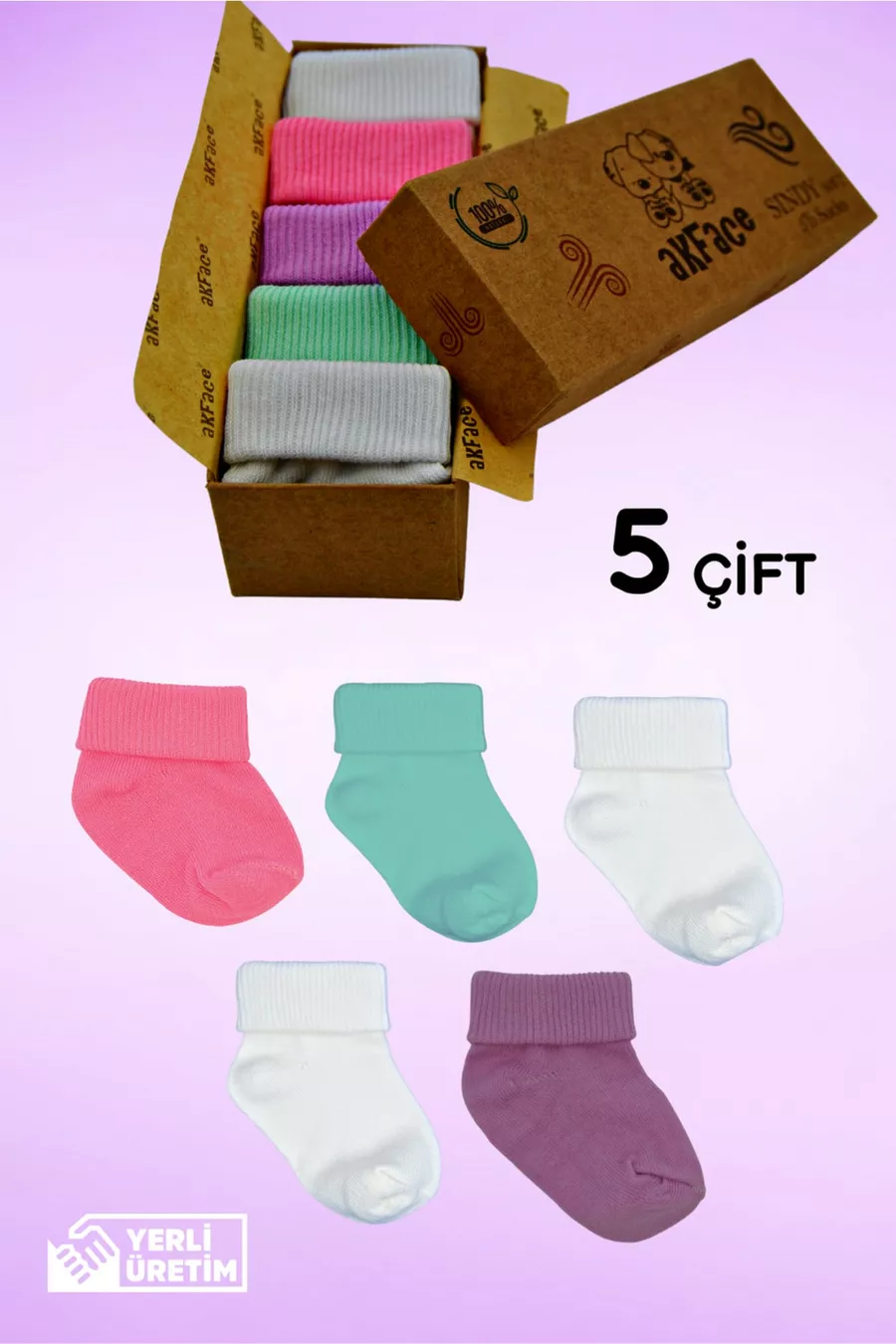 Sindy Soft Organic Cotton 5-Pack Boxed Washed Newborn Baby Girl Socks 0-6 Months