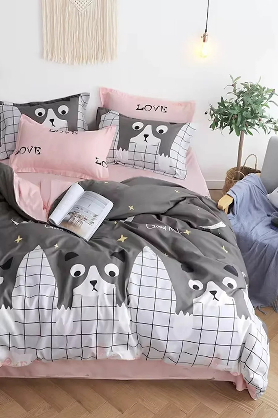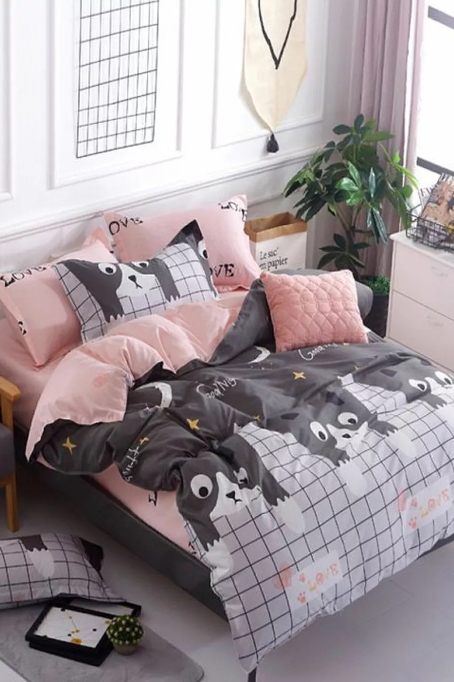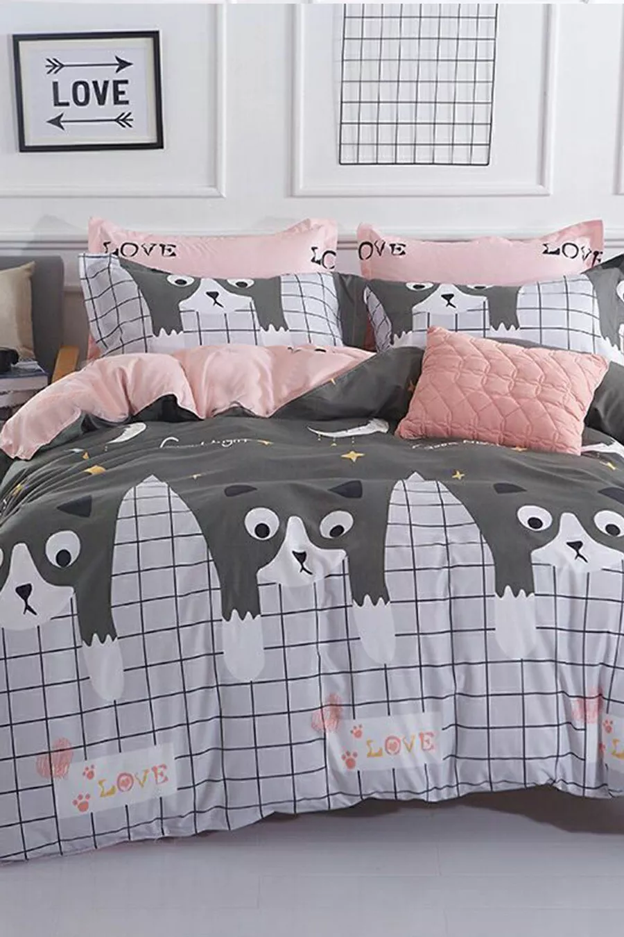 Single Bed Duvet Cover Set with Fitted Sheet Cats