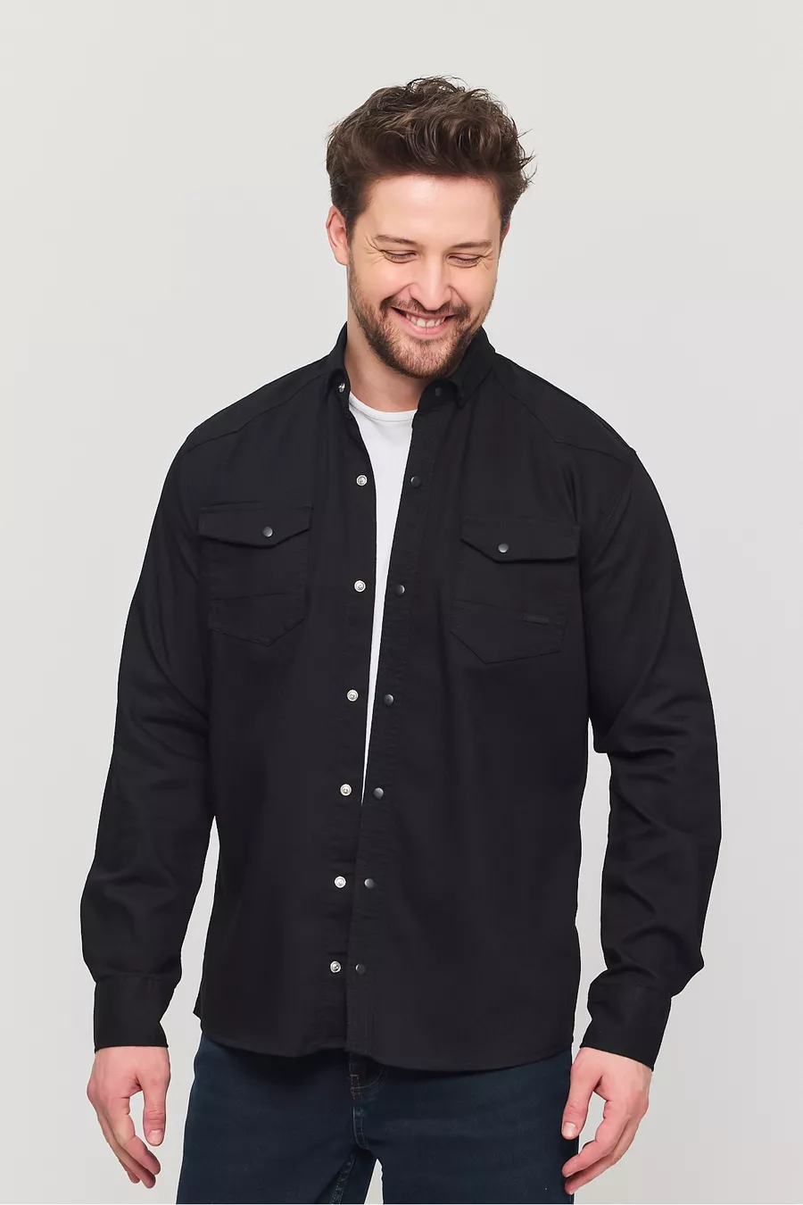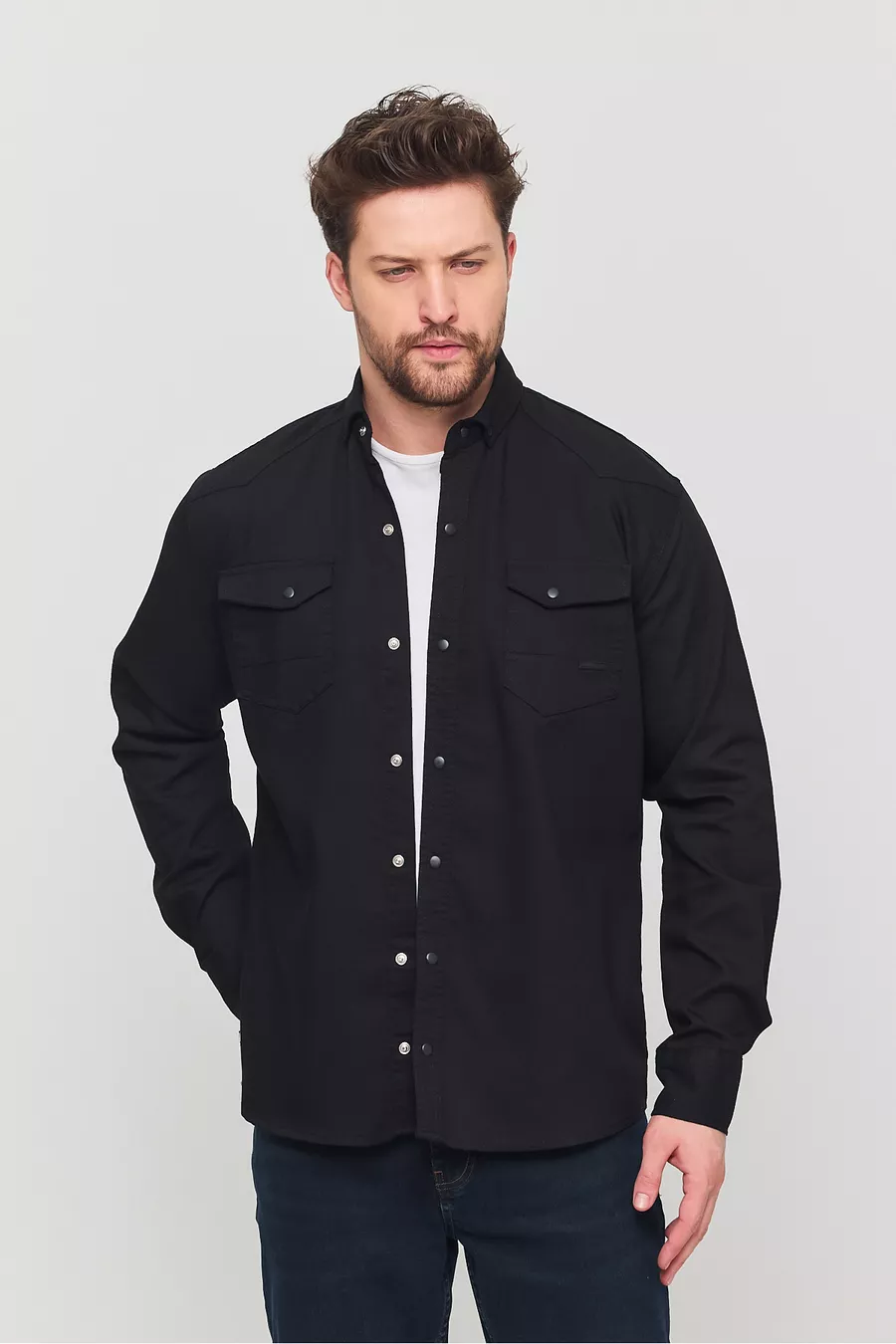 Slim Fit Men's Denim Shirt Black 5XL SIZE KG