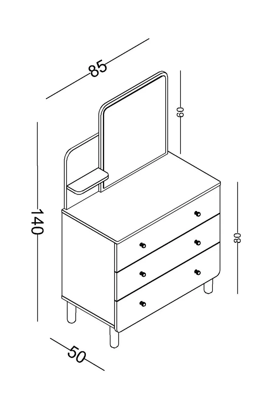 Color: Pink Warranty Period: 2 Years Material: Chipboard Height: 140 cm Width: 85 cm Depth: 50 cm Number of Drawers: 3 Product Feature: With Mirror Style: Modern Theme / Style: Modern Origin: Turkey