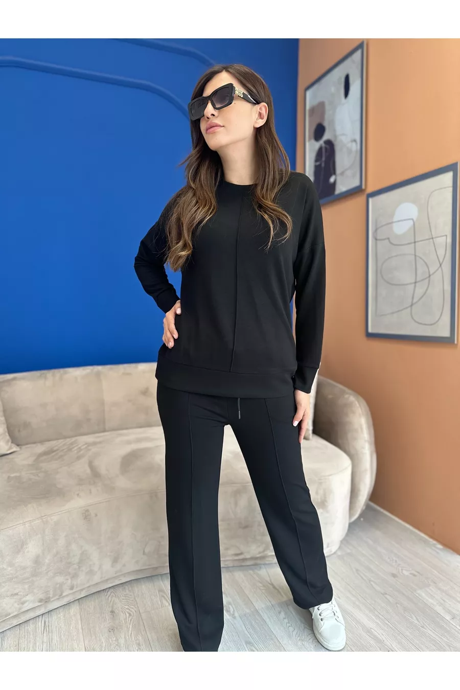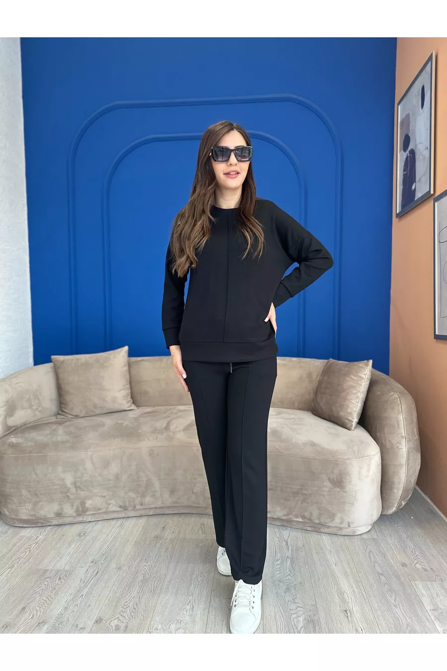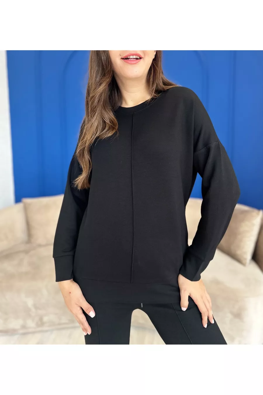 Fabric Type: Woven Material: Modal Pattern: Plain Fit: Regular Neck Type: Crew Neck Color: Black Product Detail: Striped Pocket: Double Pocket Product Type: Plain Sleeve Length: Long Sleeve Type: Standard Sleeve Collection: Casual / Everyday Thickness: Thick Waist: High Waist Leg Type: Straight Leg Silhouette: Basic Occasion: Trend Length: Regular Set: Blouse-Pants Additional Feature: Stretchy Weave Type: Lycra Suprem Persona: Cool & Comfort Belt/Strap: Without Belt Print/Embroidery Technique: No Print Number of Pieces: 2 Lining: Unlined Sustainability Detail: Yes Material Composition: MODAL Washing Instructions: WASHING INSTRUCTIONS ARE ON THE LABEL Package Content: 2+ Season: Winter Origin: TR Box Condition: No Box Closure Type: Tie / String