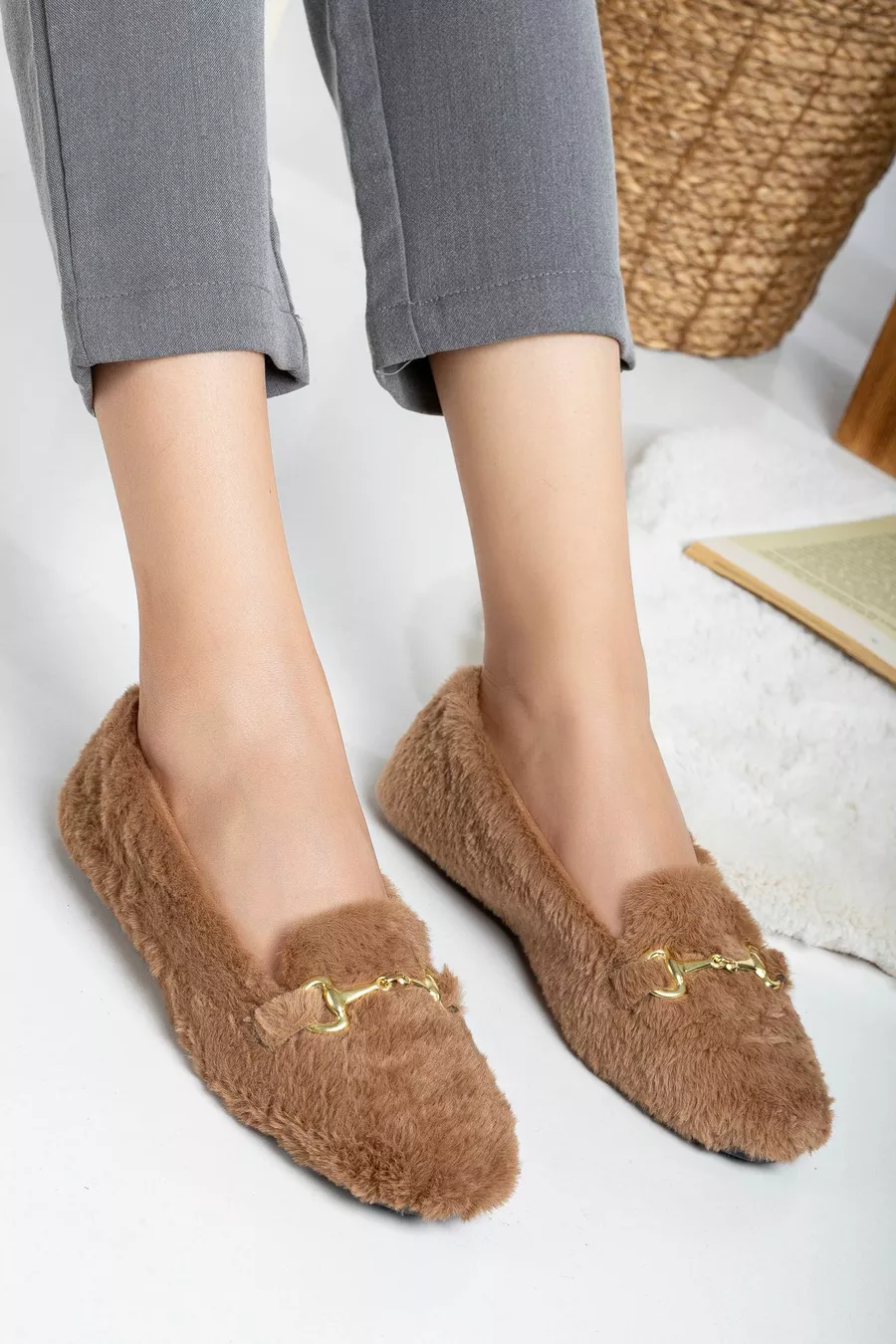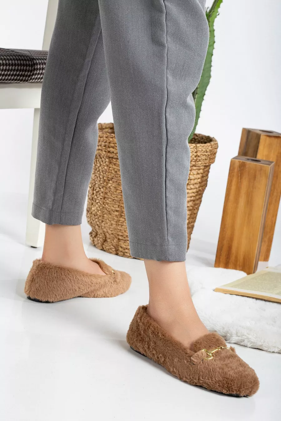 Material:Plush Sole:Rubber Color:Brown Sole Material:PVC Upper Material:Textile Heel Size: Short Heel (1- 4 cm) Insole Material:Textile Lining Material:Textile Fastening Type:Laceless Heel Type:Flat Heels Pattern:Plain Collection:Homewear Additional Feature:No additional features available Sustainability Detail:No Environment:Homewear