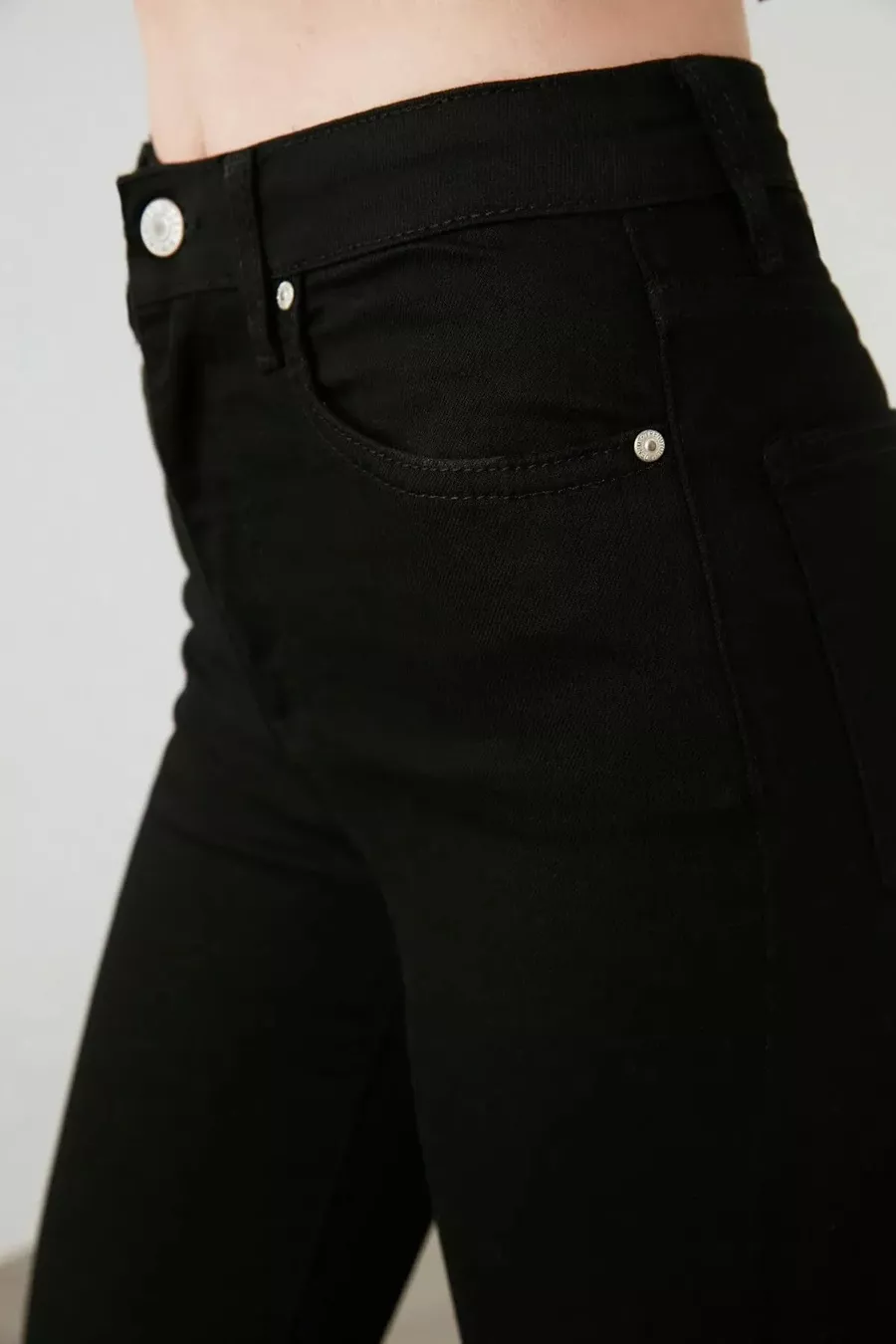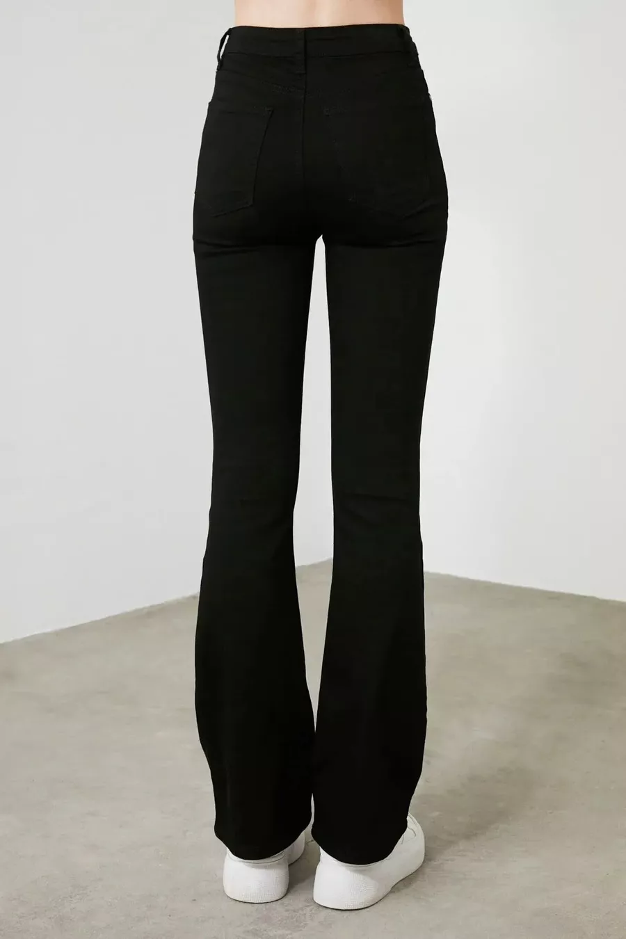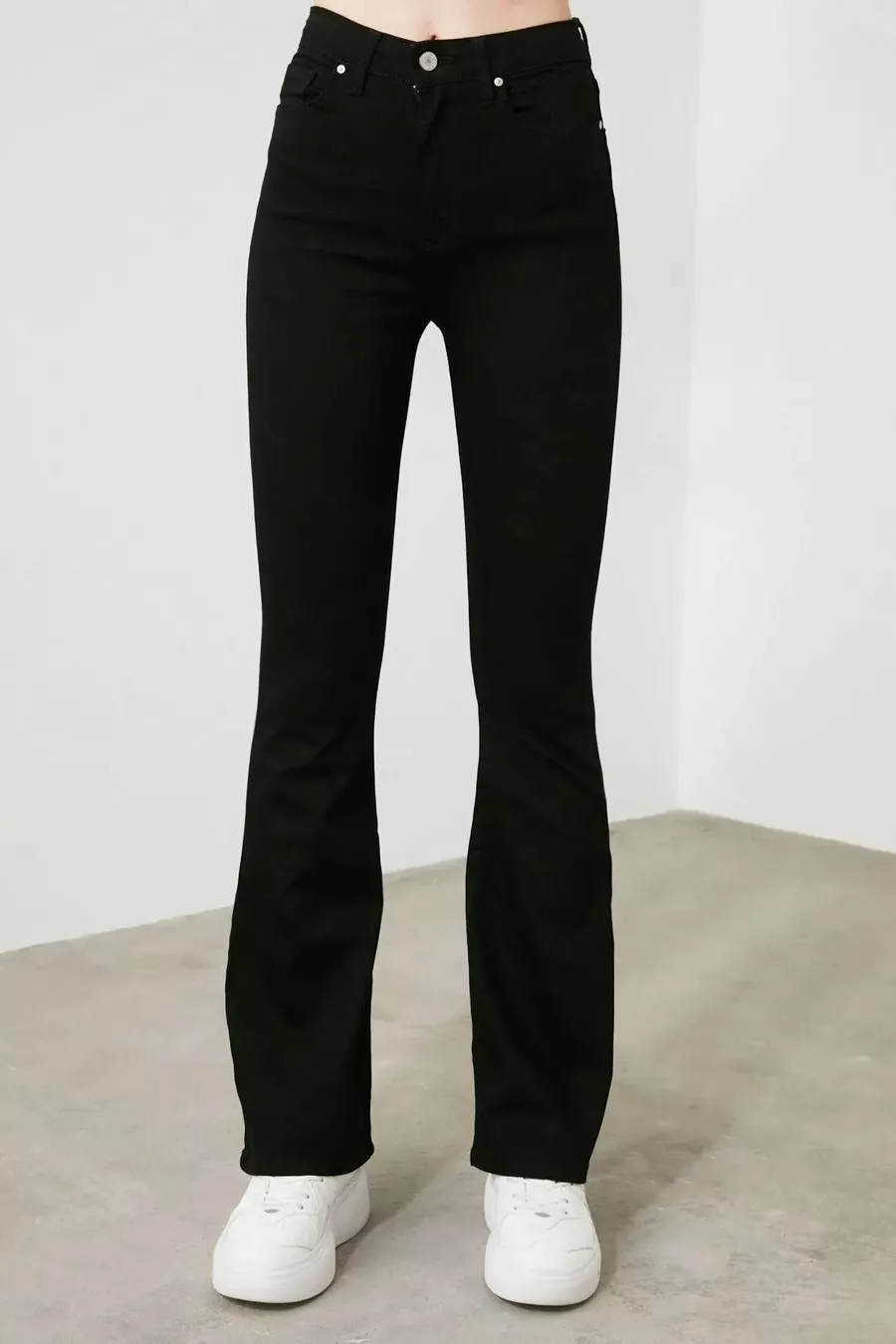 Leg Type: Spanish leg Waist/Belt Status: Without belt Waist: High Waist Color: Black Material: Elastane Pockets: 5 Pockets Product Type: Plain Collection: Young Length: Regular Fabric Type: Denim Silhouette: Flare Occasion: Casual/Daily Fit: Bootcut Pattern: Plain Additional Feature: Shaping Closure Type: Zipper Weave Type: Comfort Sustainability Detail: No Persona: Young Material Composition: 97% Cotton, 3% Elastane Washing Instructions: Type 3 Box Status: No box Package Contents: Single