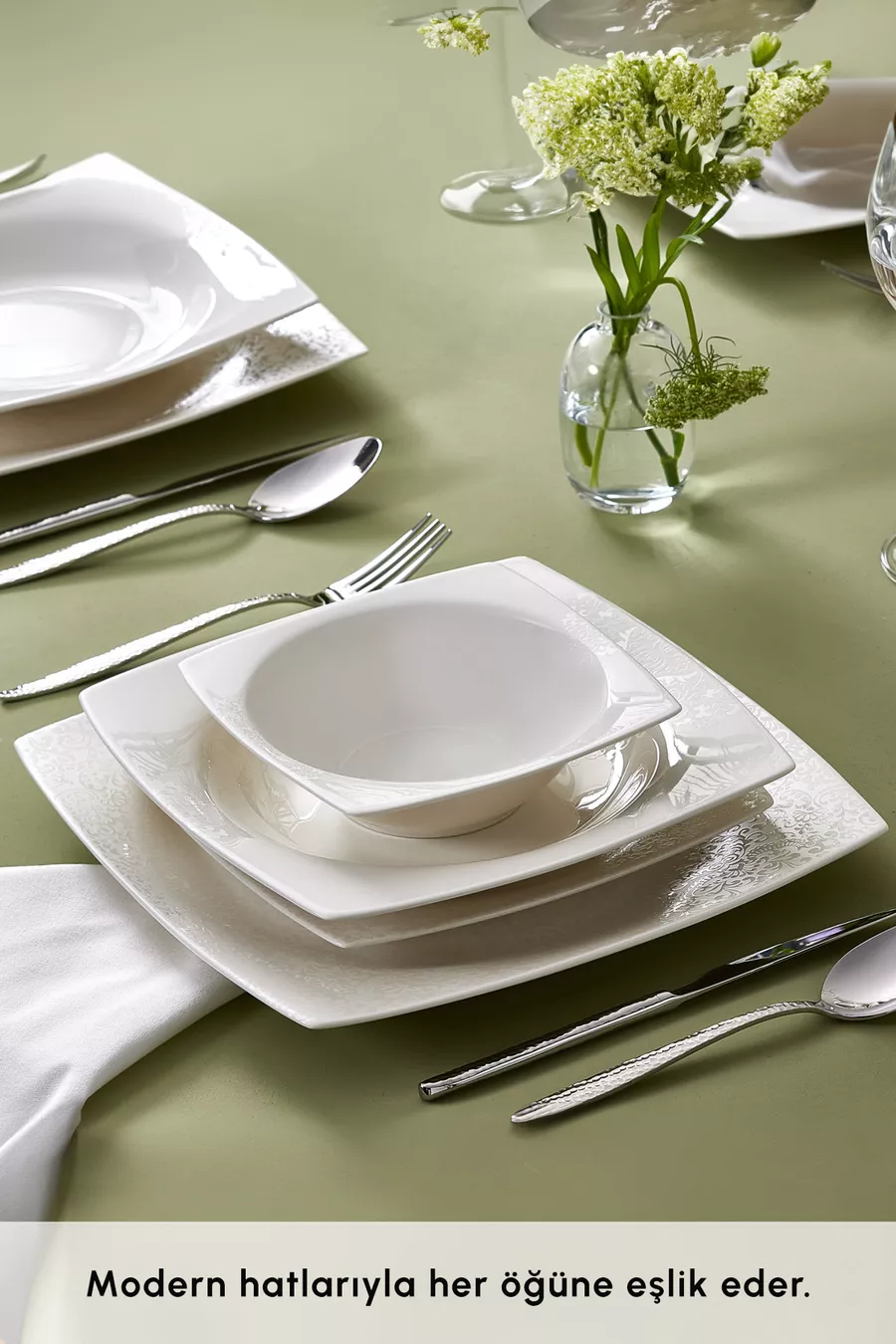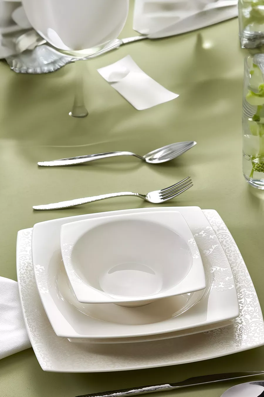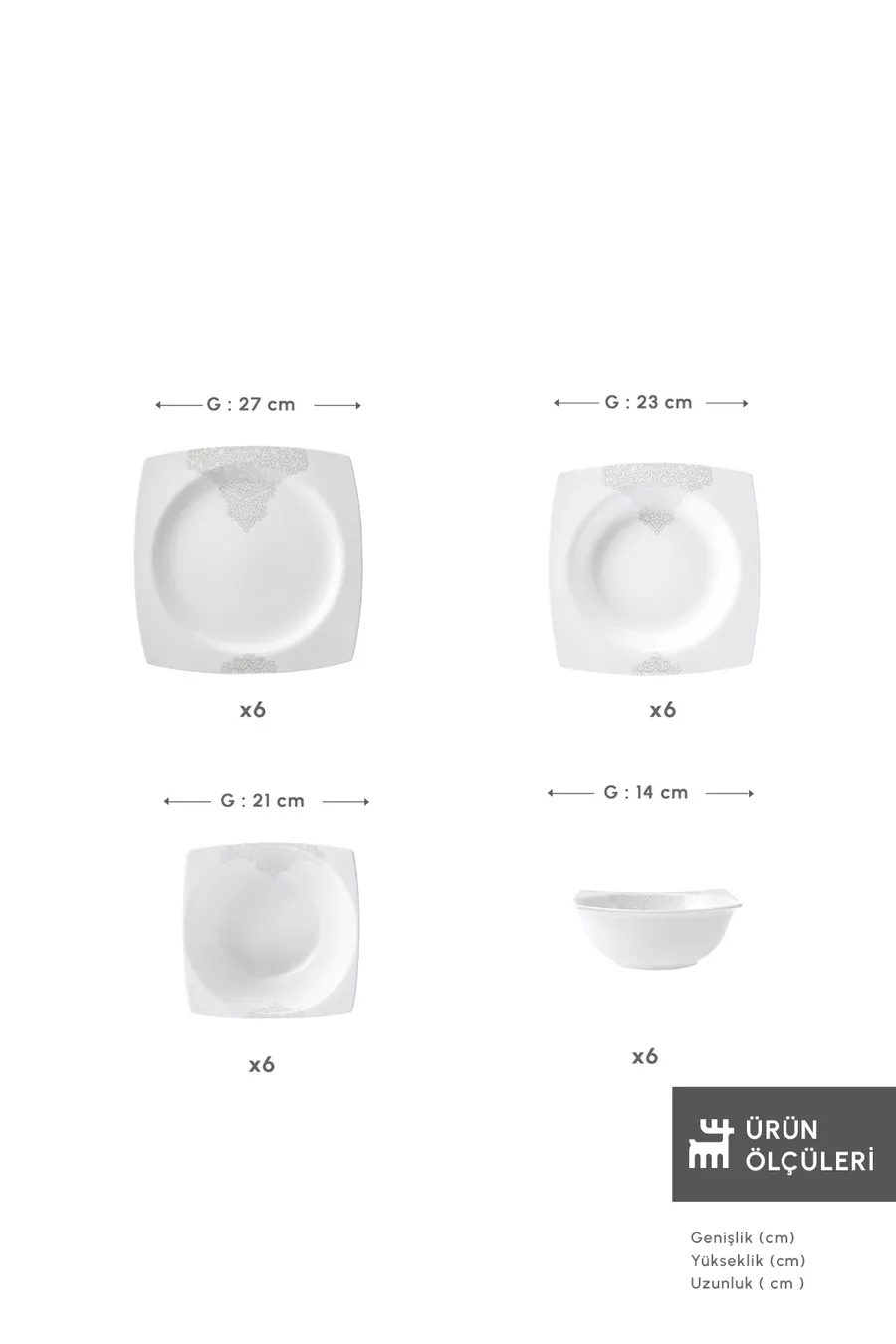 Color: White Number of People: For 6 People Material: Bone China Number of Pieces: 24 Feature: Hand Washable Theme / Style: Avant-garde Shape: Square Origin: EG