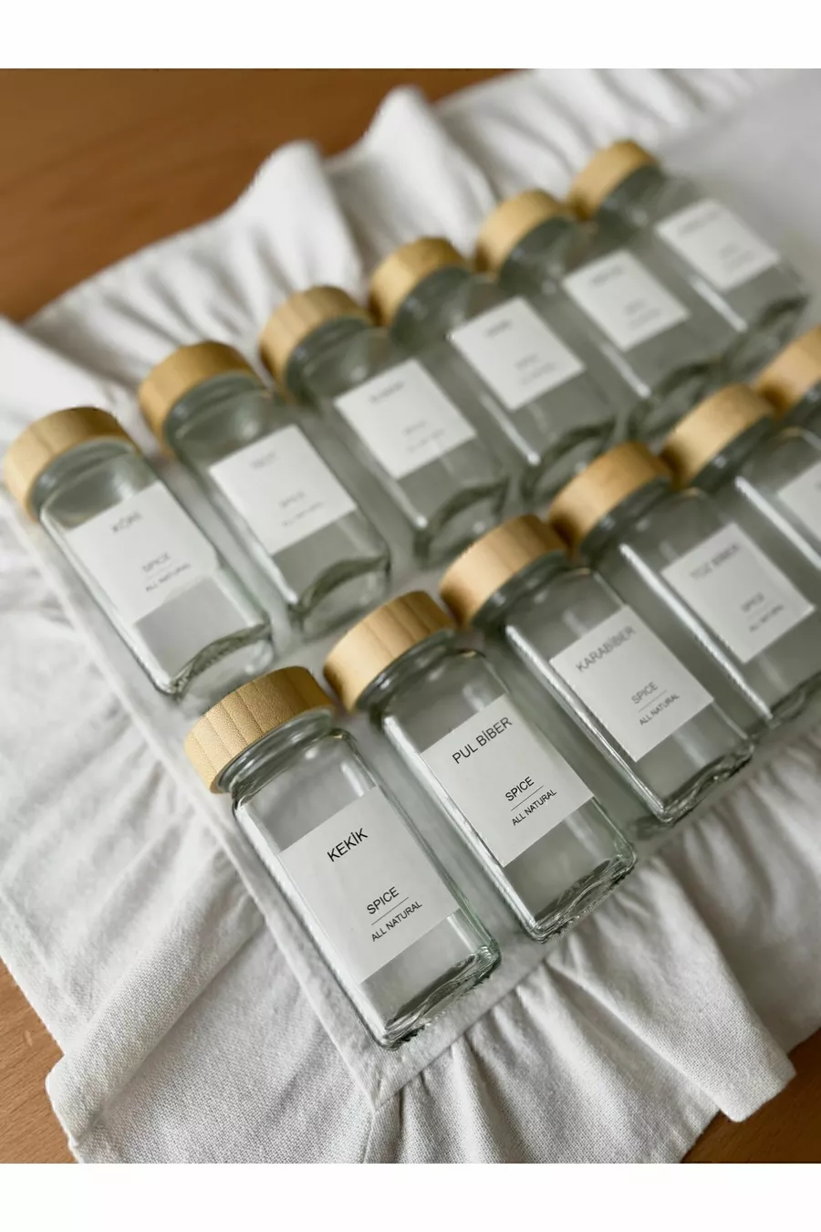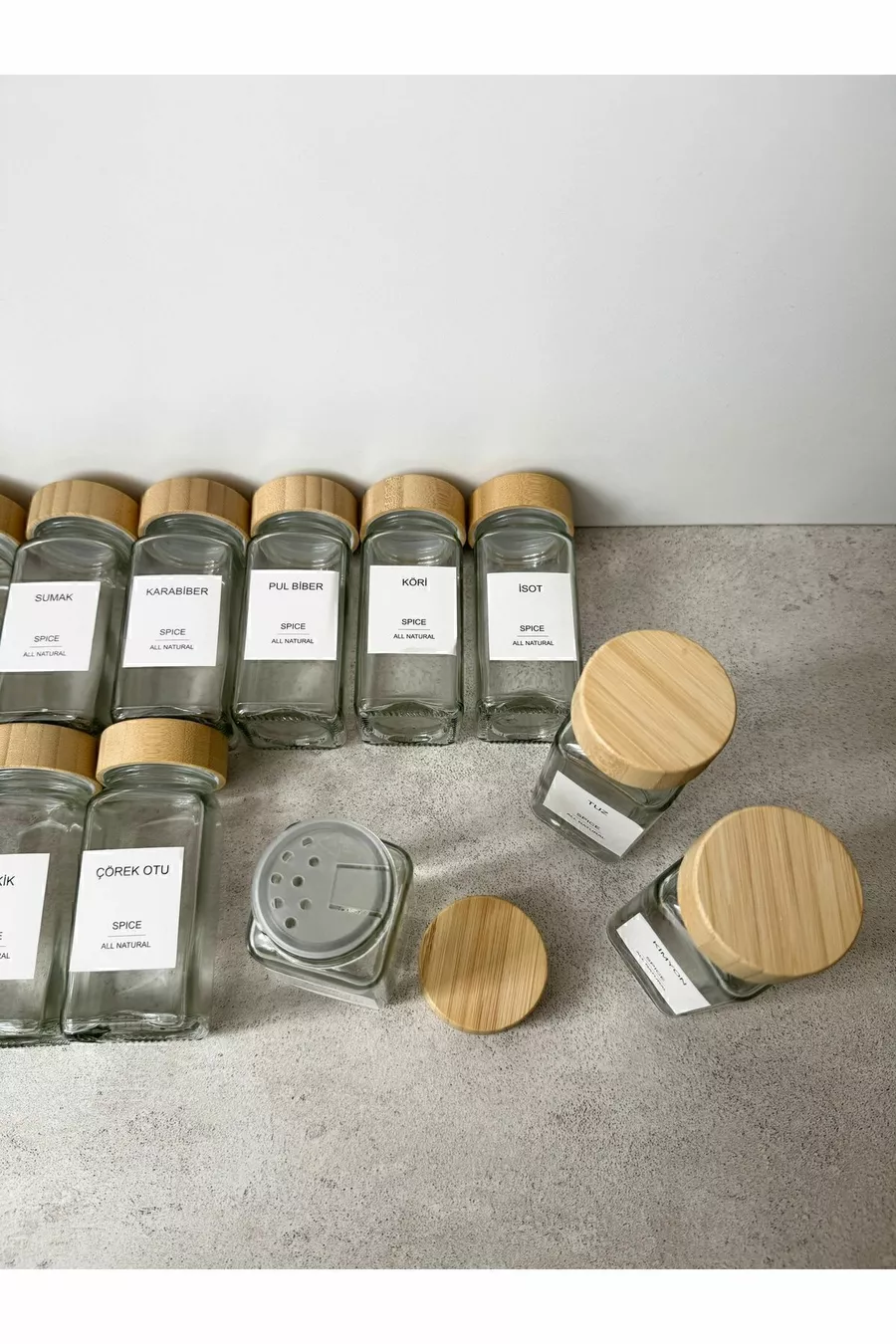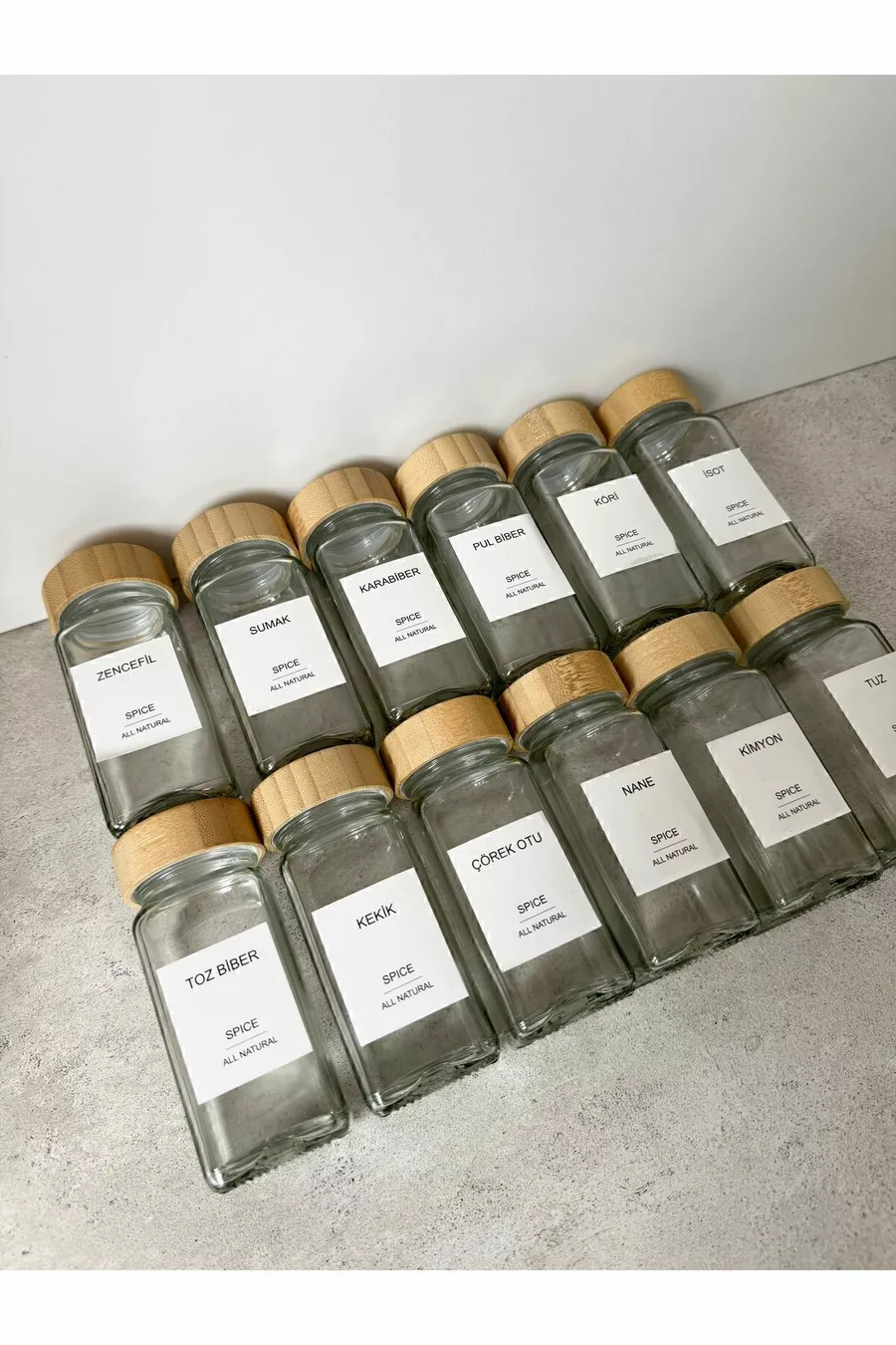 Square Glass Spice Jar Set with Bamboo Lid / Piece Label