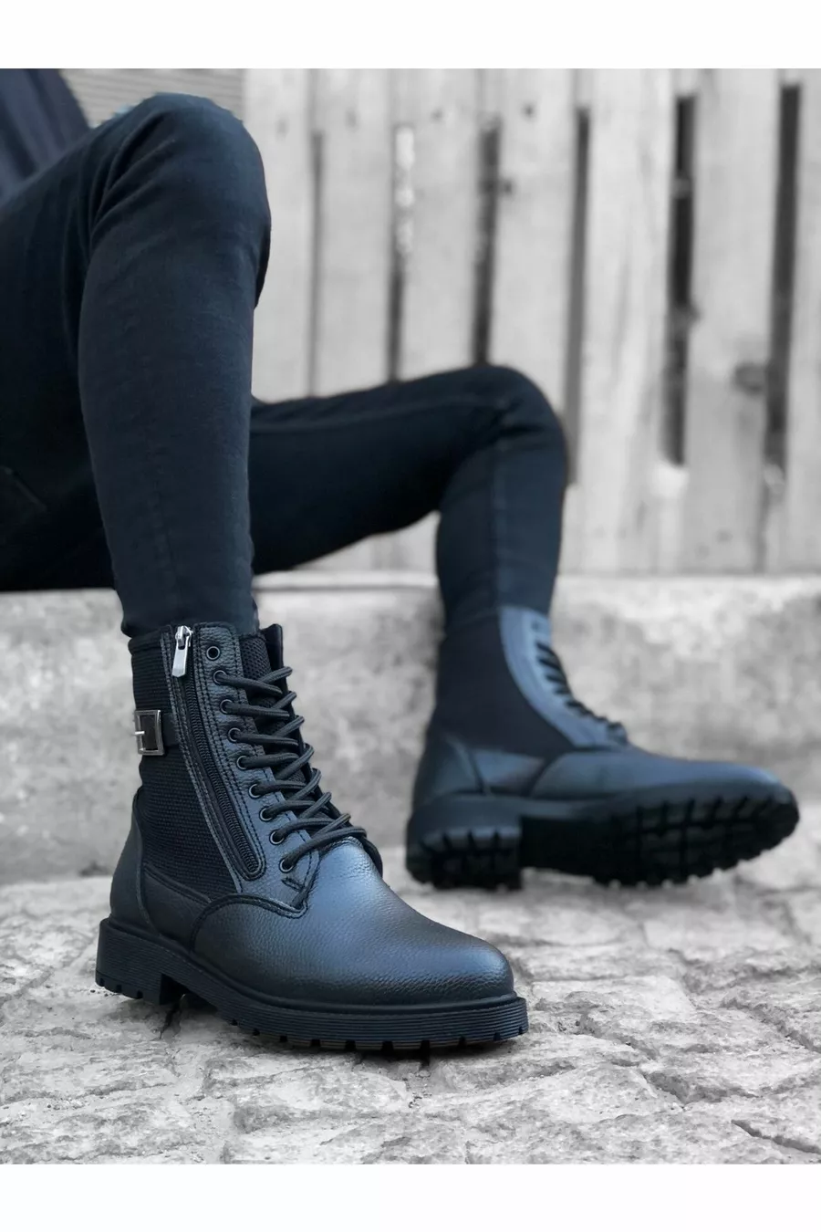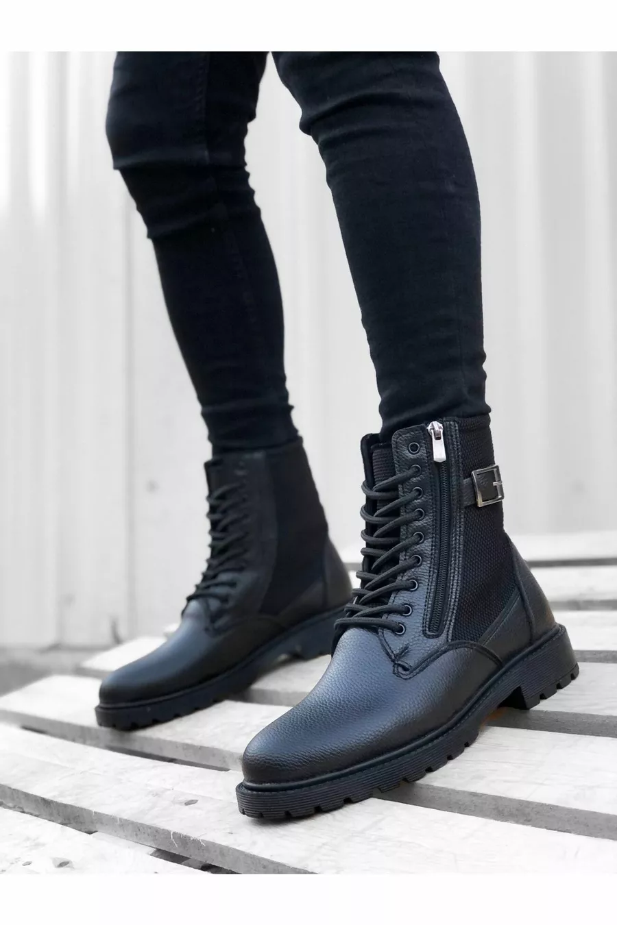St Lace-Up Zipper Buckle High Thick Sole Half Ankle Men's Postal Boots Black