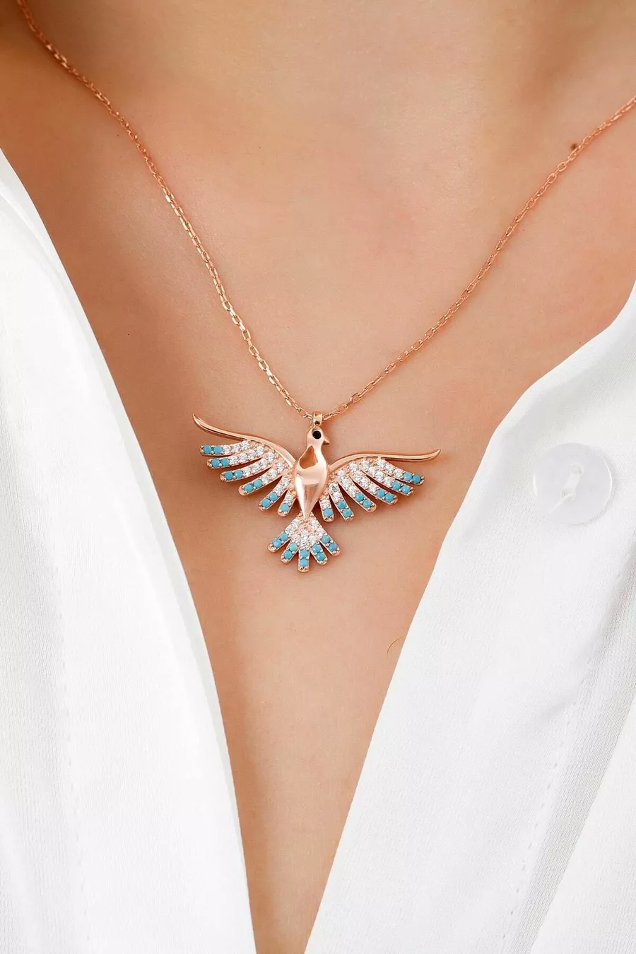 Sterling Silver Emerald Phoenix Silver Women's Necklace (SPECIAL BOX)