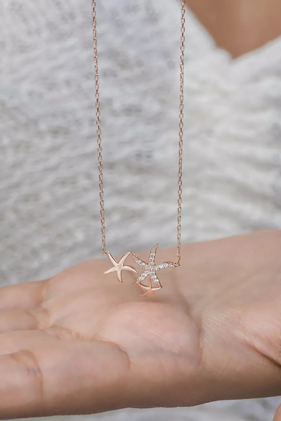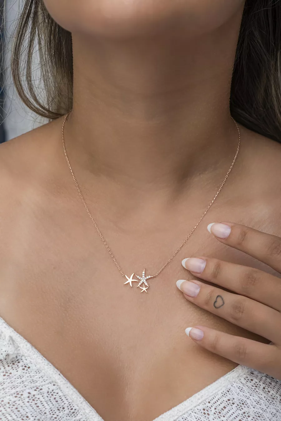 Sterling Silver Rose Zircon Stone 3-Star Necklace