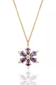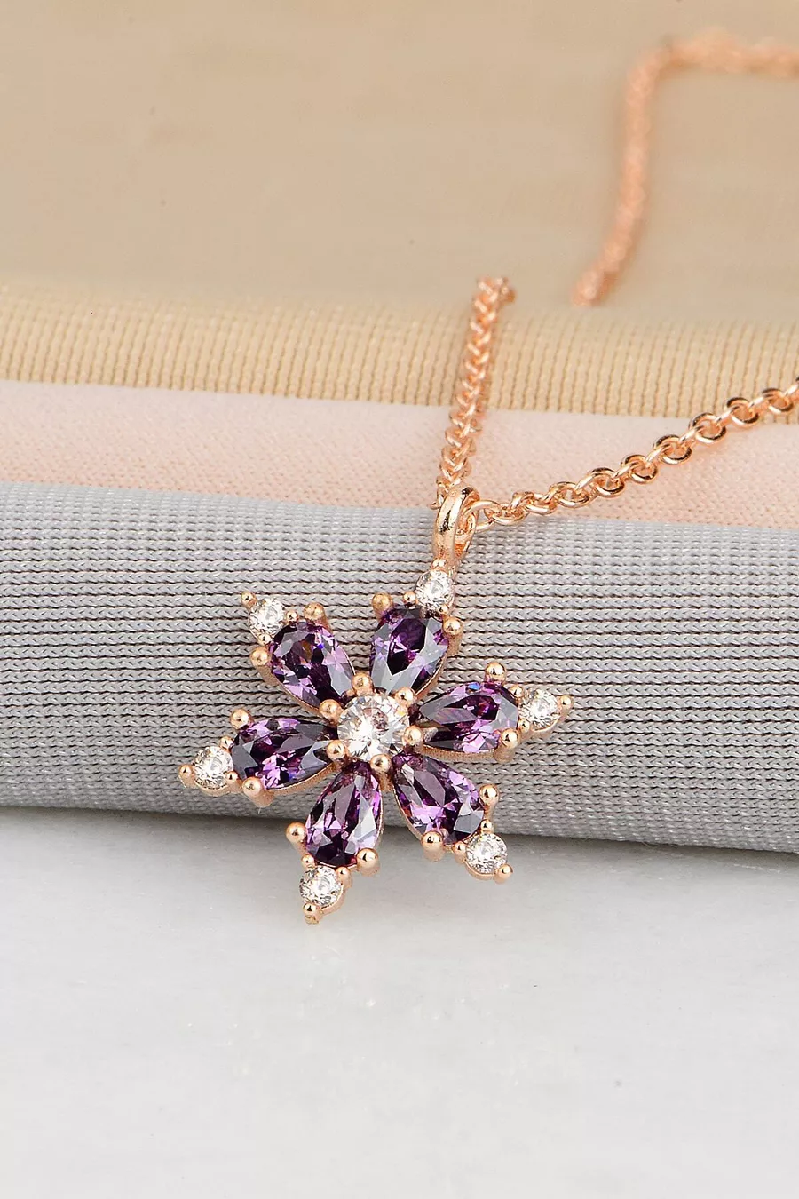 Sterling Silver Chain Rose-Plated Amethyst Teardrop Stone Camellia Lotus Flower Necklace